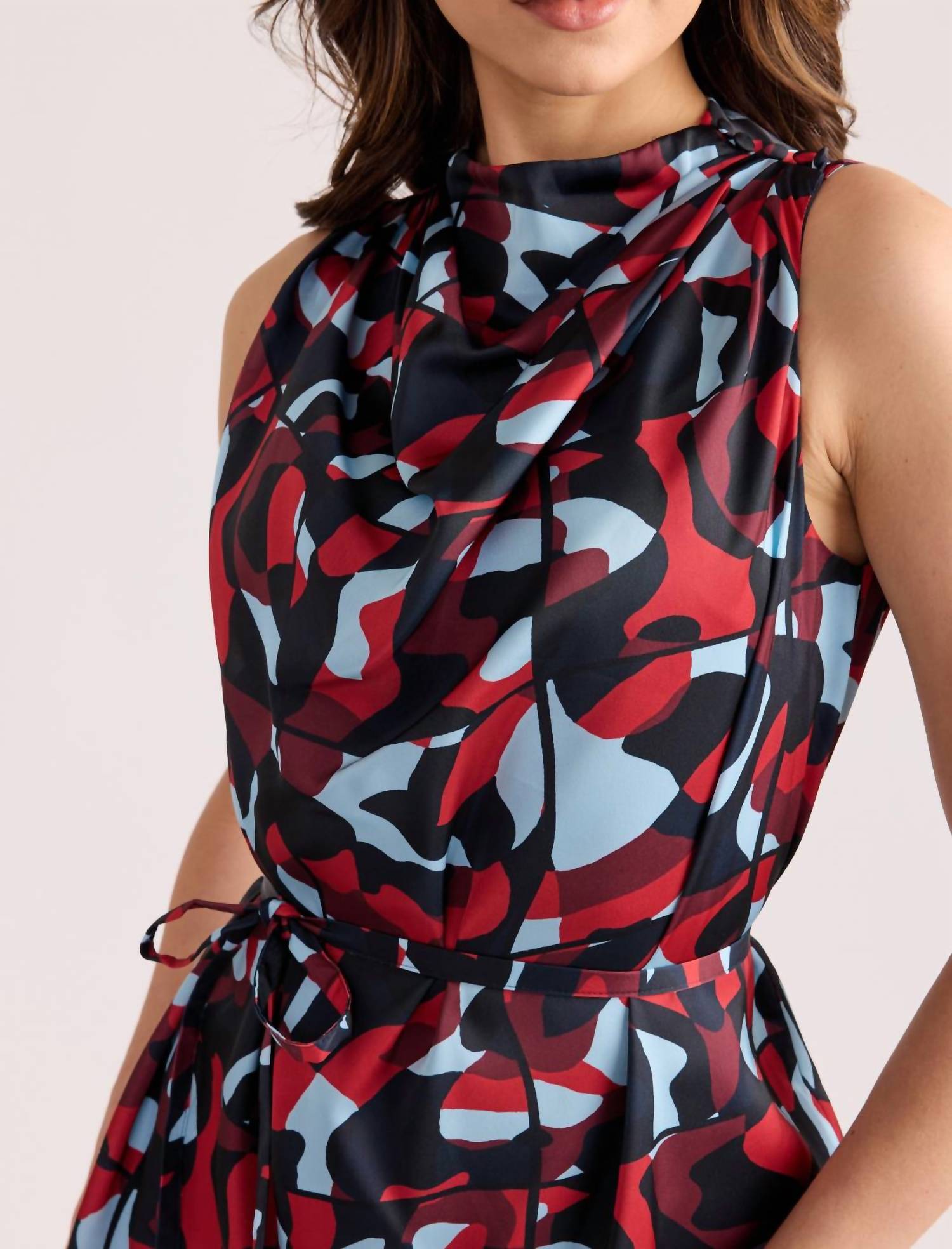 Fit, fabric and functionality. This tank top checks all the boxes. Introducing the Bree Tank Top from S'edge in a chic City Camo print, designed to elevate your fall wardrobe with a maximalist flair. This women's top features a sleeveless, mock neck silhouette with a versatile tie belt, perfect for vacation occasions. Crafted from Poly Charmeuse with a shell and lining of 100% polyester, it offers effortless style and comfort. Closure: Pull on. Care: Dry clean only, hang dry, and low iron if needed.