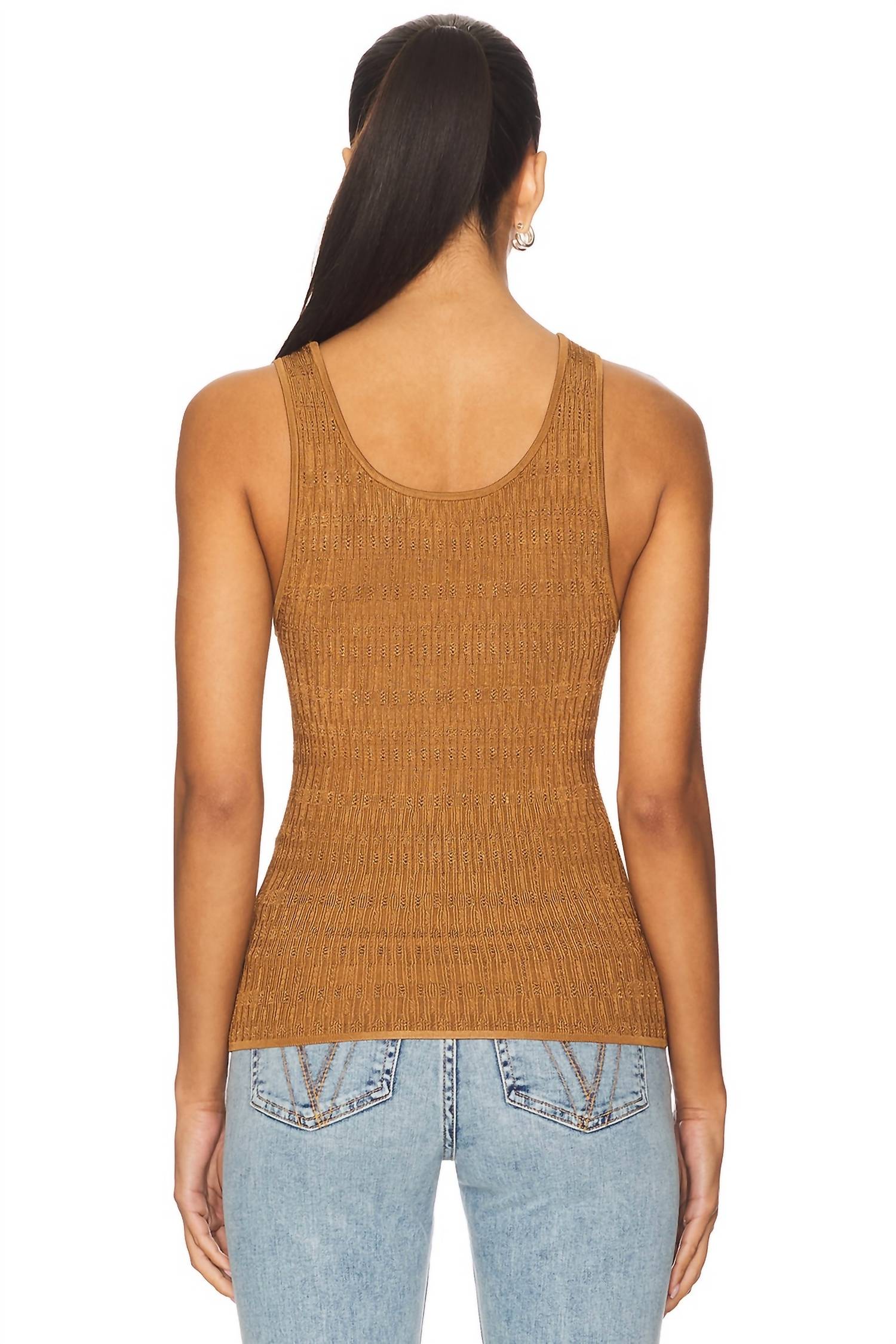 The perfect tank top for those warmer weather seasons. The Sandra Tank by Veronica Beard is a must-have for your summer wardrobe, offering a flattering fit in the rich hue of Whisky. This 100% Rayon tank top, featuring a stylish textured knit, has a generous scoop neckline and measures 22.25 inches in length, based on a size S. With its sleeveless design, it's a versatile piece perfect for layering under a blazer or wearing on its own. Closure type: pull on. Care: Dry clean only.