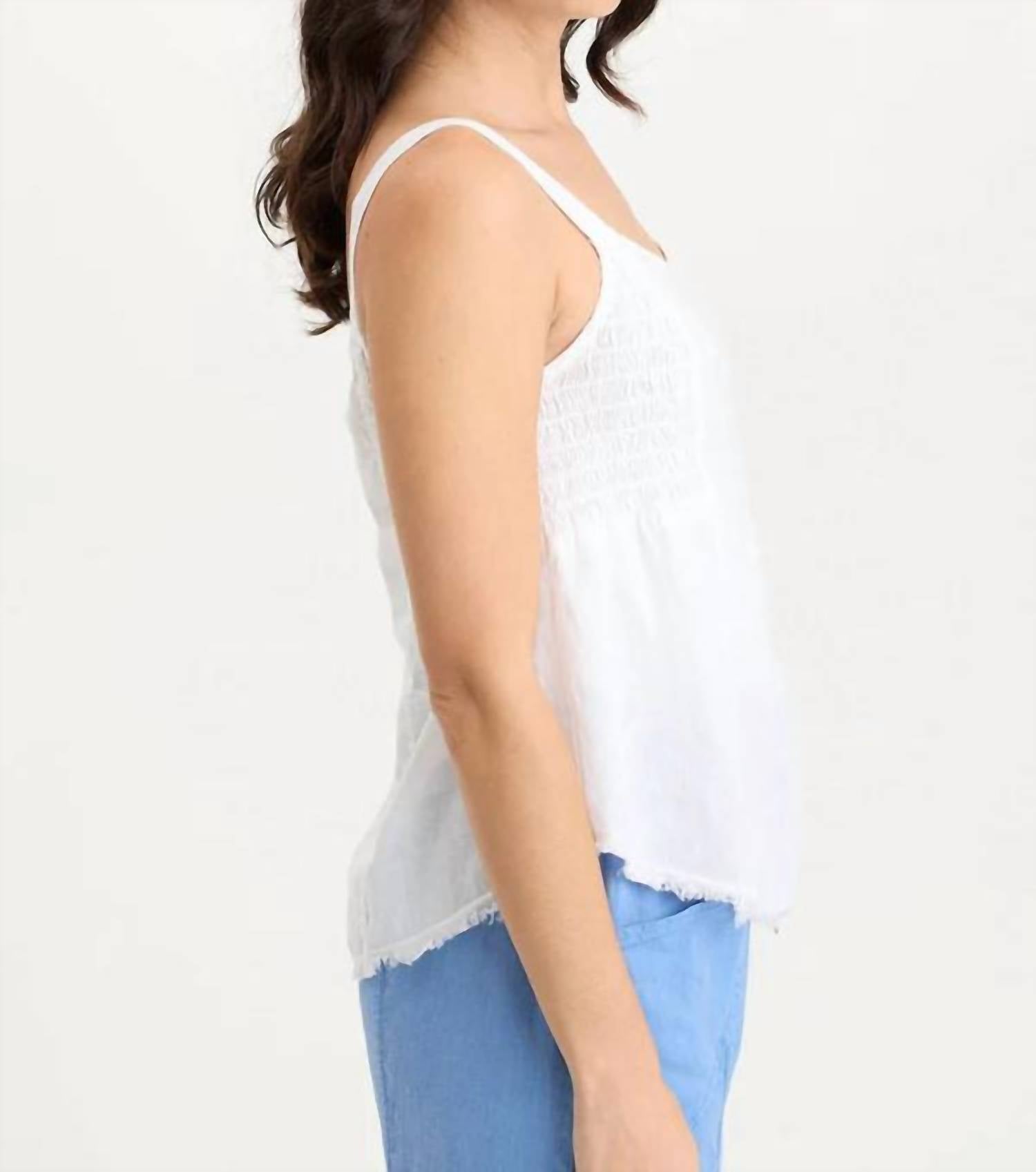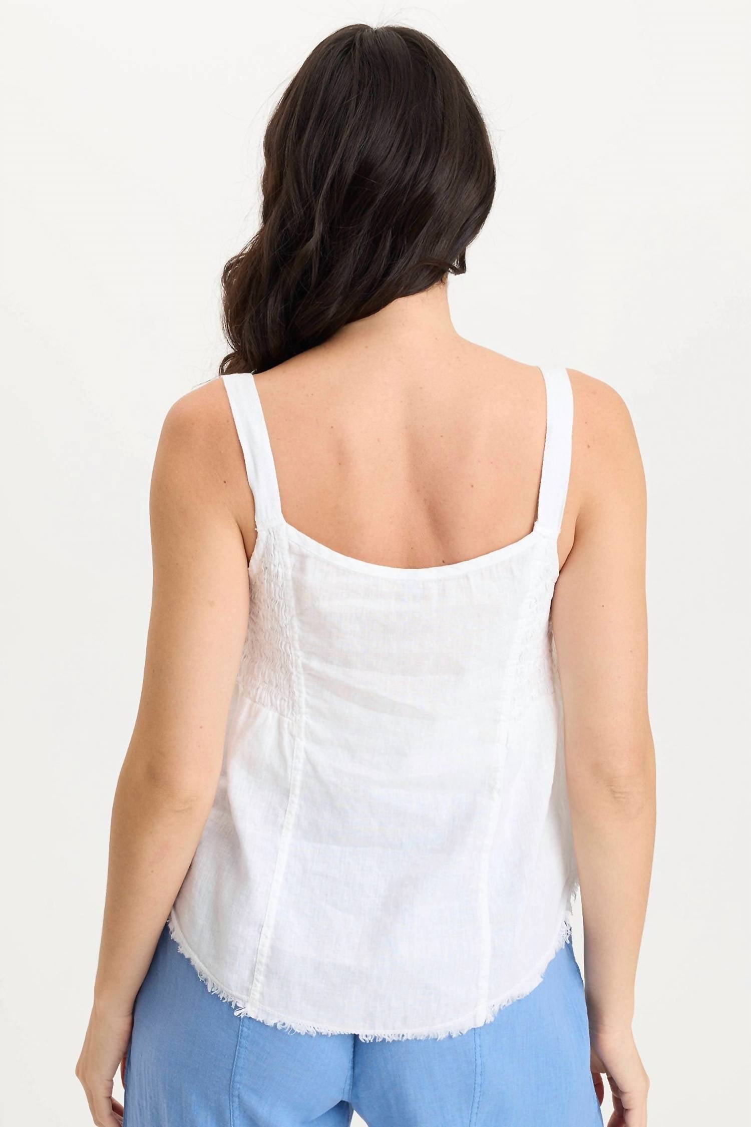 Fit, fabric and functionality. This tank top checks all the boxes. The Fernley Tank by XCVI is a sleeveless staple, featuring a flattering A-line silhouette with a rounded hem and twill tape straps. Crafted from a lavish linen blend of 78% linen and 22% cotton. Made with a center back length of approximately 17.5 inches, this piece is preshrunk and easily maintained. Machine washable. Imported.
