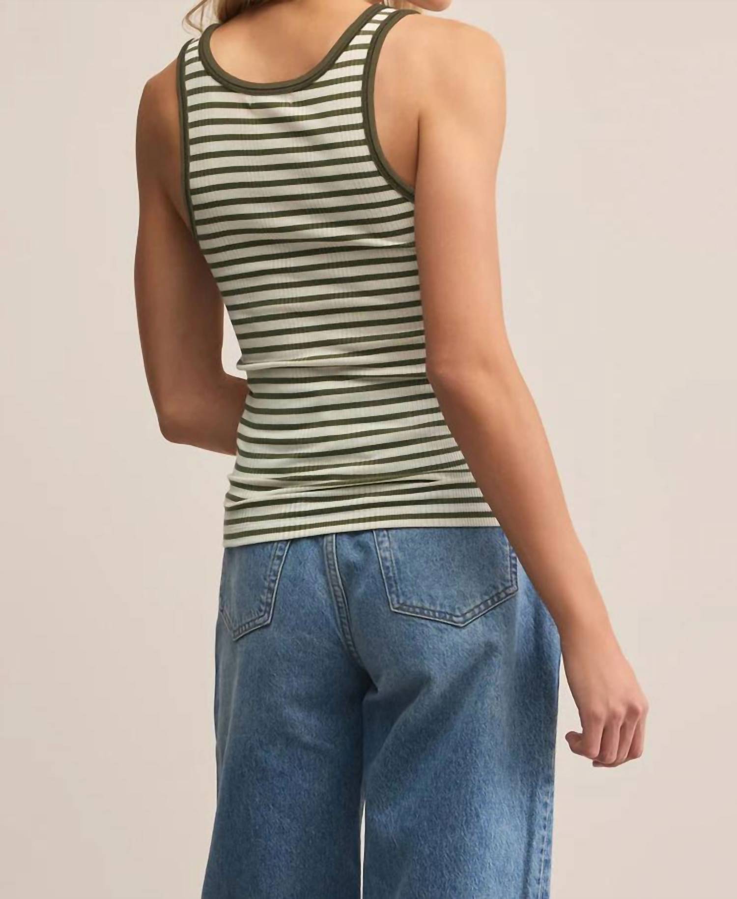 Fit, fabric and functionality. This tank top checks all the boxes. Embrace effortless summer style with the Z Supply Classic Striped Tank Top in Fern, a sleeveless staple for every wardrobe. This scoopneck tank is crafted from a soft cotton blend of 62% Cotton, 33% Rayon, and 5% Spandex, offering a relaxed classic fit with a subtle racerback design. The pullover style and minimalist fern green with white stripes pattern are perfect for travel and casual occasions. Care is simple with machine wash cold and tumble dry low instructions.