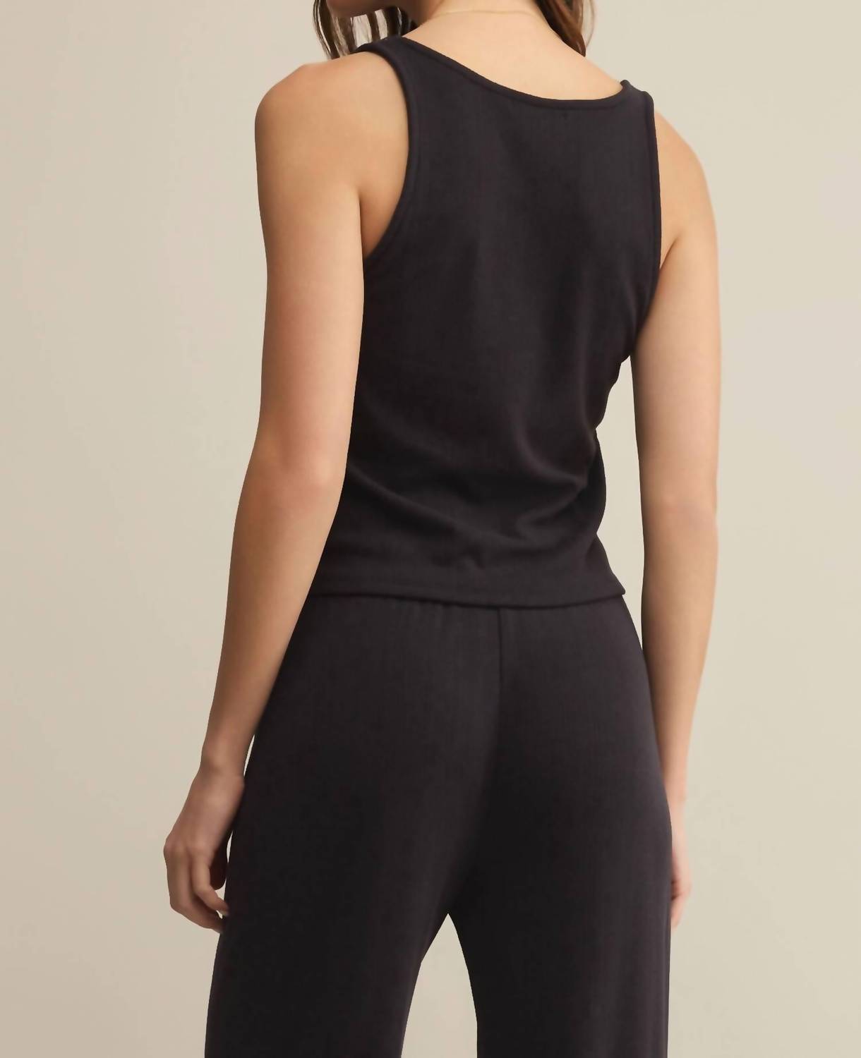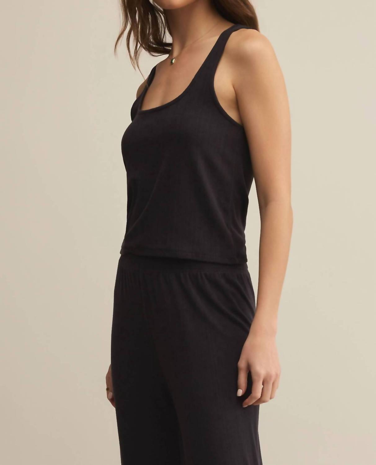 Fit, fabric and functionality. This tank top checks all the boxes. Elevate your summer wardrobe with the Women's Starry Eyed Tank Top by Z Supply, perfect for holiday parties and monochrome fashion lovers. This sleeveless tank in Black Sand is crafted from a blend of 95% polyester and 5% spandex, ensuring a comfortable stretch and fit. It features a stylish scoopneck and a convenient pull-on closure. Care is effortless with machine wash and line dry instructions.