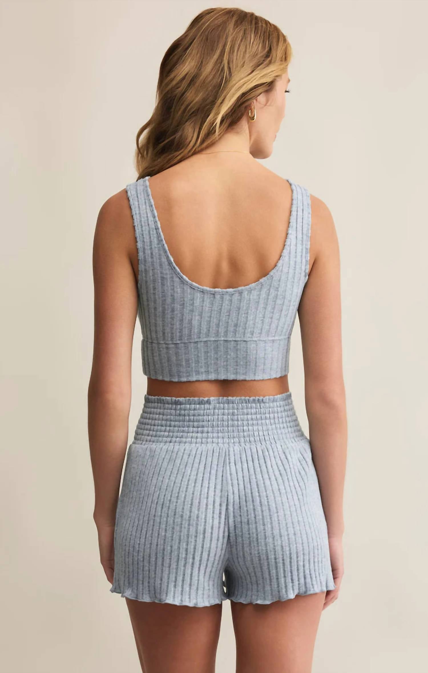 The perfect tank top for those warmer weather seasons. Presenting the Zoe Rib Tank Bra by Z Supply, a staple for comfort and style in Light Denim. This sleeveless bra top is expertly crafted from a Silky Rib blend of 97% Polyester and 3% Spandex, featuring a flattering scoop neck and wide straps for added comfort. Designed for a snug fit, it includes double lining to provide light support. Care is simple with machine wash cold on a gentle cycle and tumble dry low for easy maintenance.