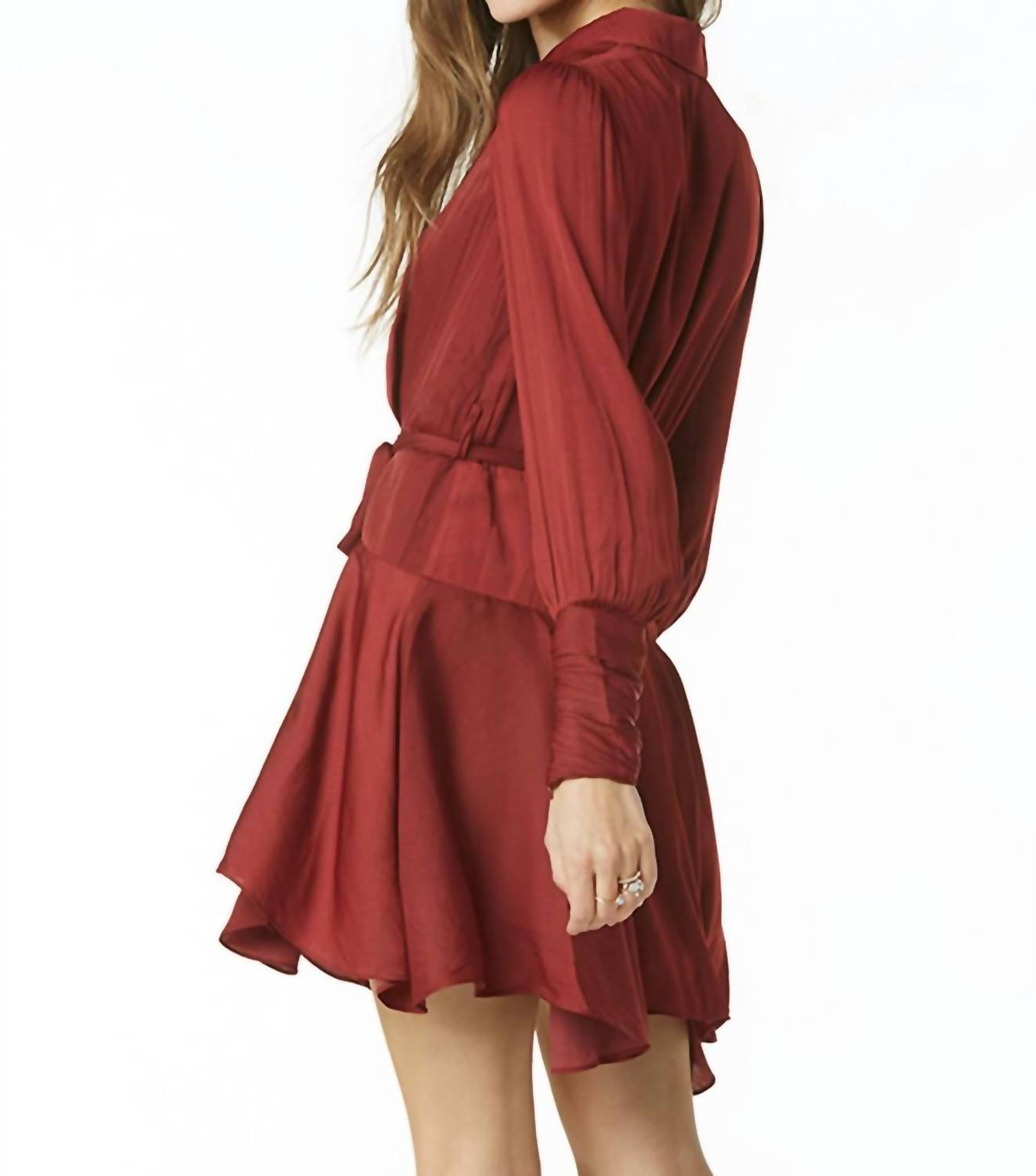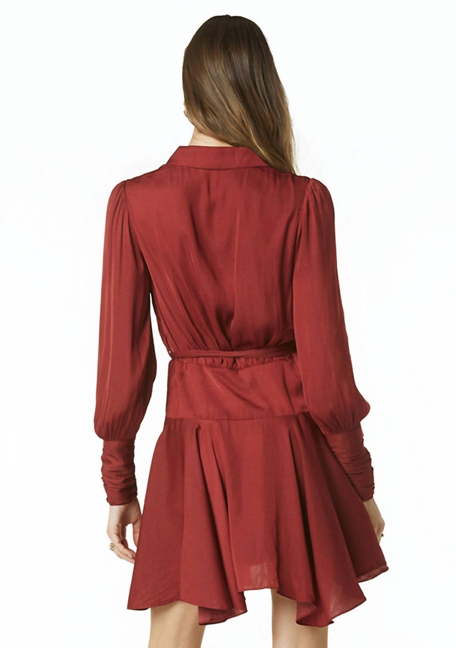 Comfortable and cute, this casual day dress has it all. Introducing the Glenna Poly Silk Dress by Tart Collections, a chic casual piece in a rich Cabernet color perfect for holiday parties. This dress features long sleeves with tall cuffs and a flattering wrap silhouette with a V-neckline, making it a standout choice. Made from 100% polyester, it offers a luxurious feel with a convenient tie closure. For care, machine wash on a delicate cycle and lay flat to dry, using a cool iron if needed. Model is 5'8" and wearing a size x-small.