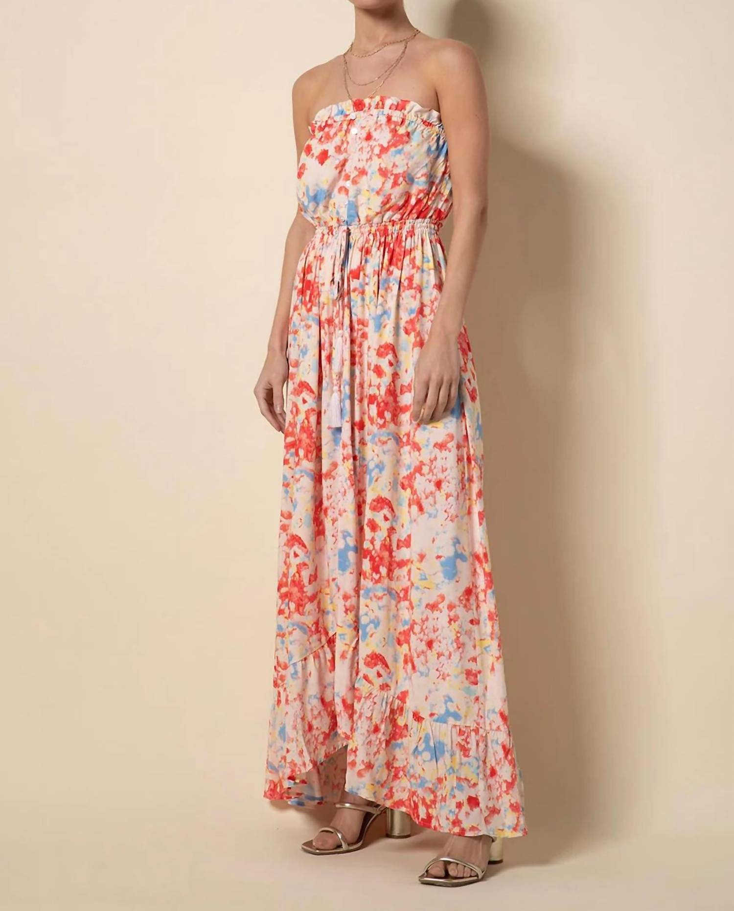 Style this maxi with your favorite statement necklace and sandals for the perfect look. Unveil a relaxed yet chic vacation look with the Milla Strapless Maxi Dress by Tart Collections. This patterned maxi dress showcases a strapless, off-the-shoulder neckline with an effortless pull-on closure, perfect for warm summer days. Crafted from 100% rayon challis, it promises a flowy silhouette ideal for your maximalist style. Care effortlessly with machine wash on a delicate cycle and line dry for best results. l.