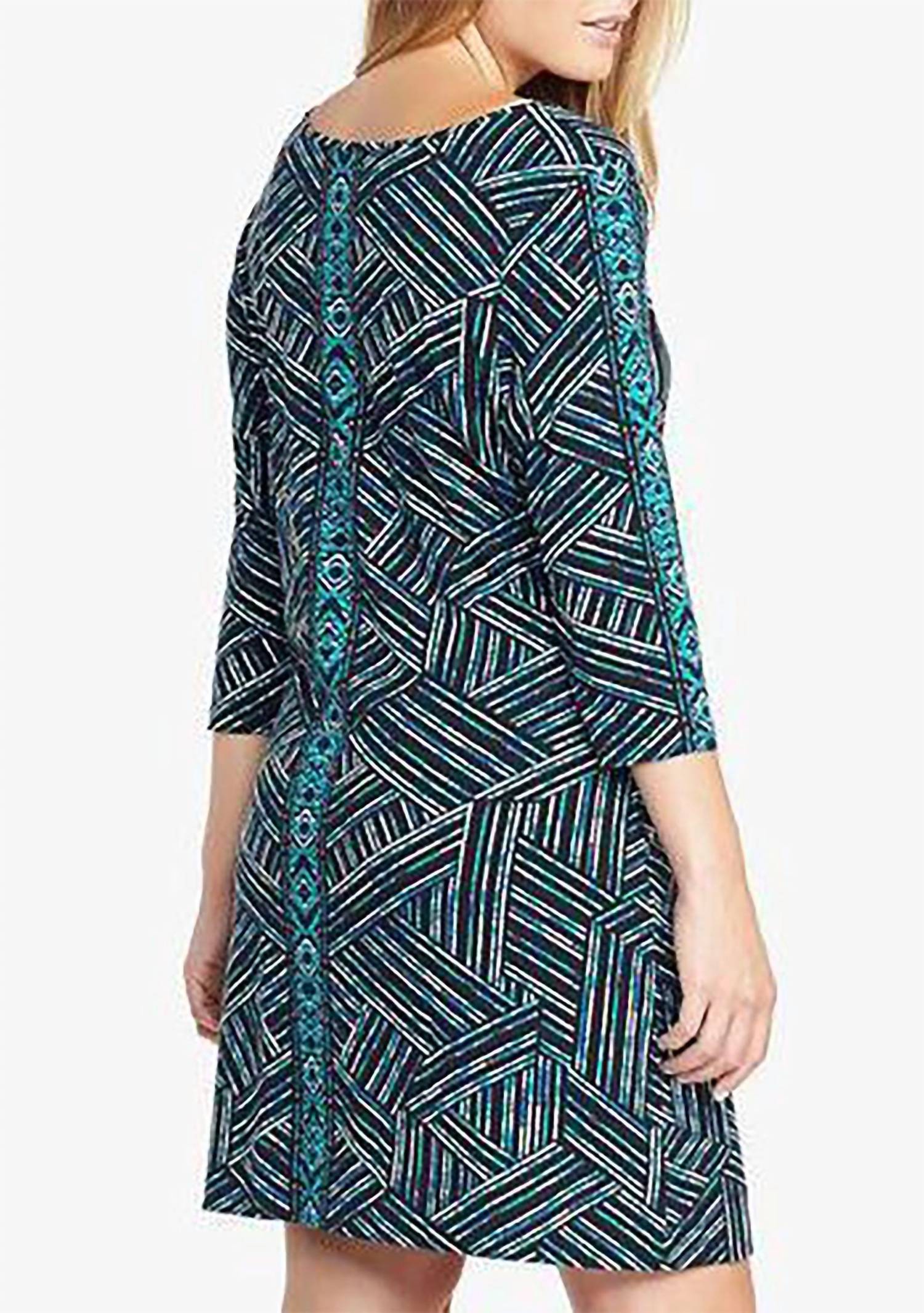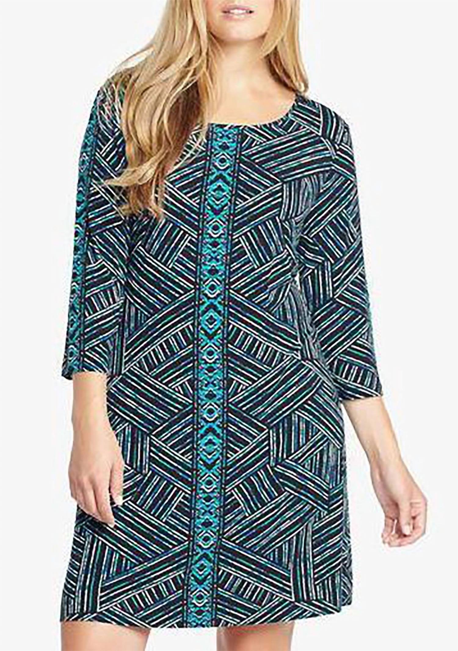 A short and breezy dress for those warmer days. Introducing the Nessa Plus Mini Dress by Tart Collections, a must-have for any wardrobe. This dress features a comfortable three-quarter sleeve design in a stylish mirrored stripe pattern, made from soft modal spandex. Offering a flattering shift silhouette with a 32" length from center front to hem, it's ideal for both day and night wear. Closure: Pull on. Care: Machine wash cold, lay flat to dry. Measurements are taken from size 1X.