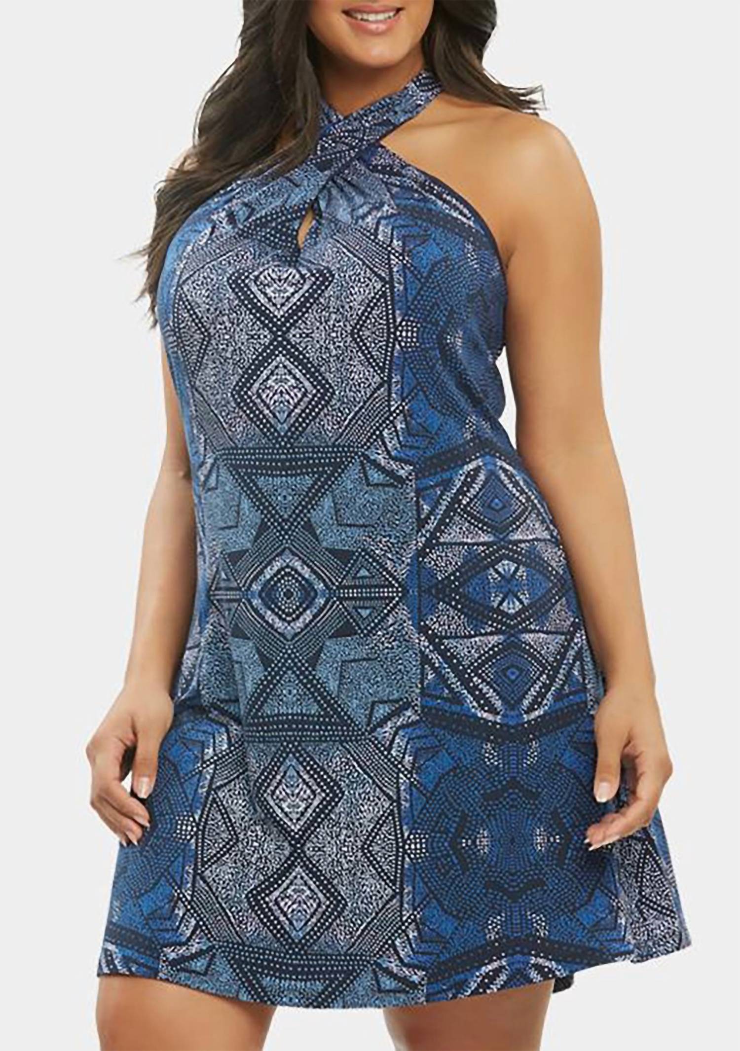The perfect mini dress for those warmer months. Introducing the Rumi Plus Dress by Tart Collections, a perfect blend of style and comfort in a captivating Batik Diamonds pattern. This A-line mini dress features a sleeveless design with a halter neckline and a charming front crossover detail for a flirty look. Crafted from 95% Modal and 5% Spandex, this dress offers both softness and stretch. Care: Machine wash cold and lay flat to dry. Model is wearing a size 1X (5'8.5" height, 44.75" bust, 36" waist, 46" hips).