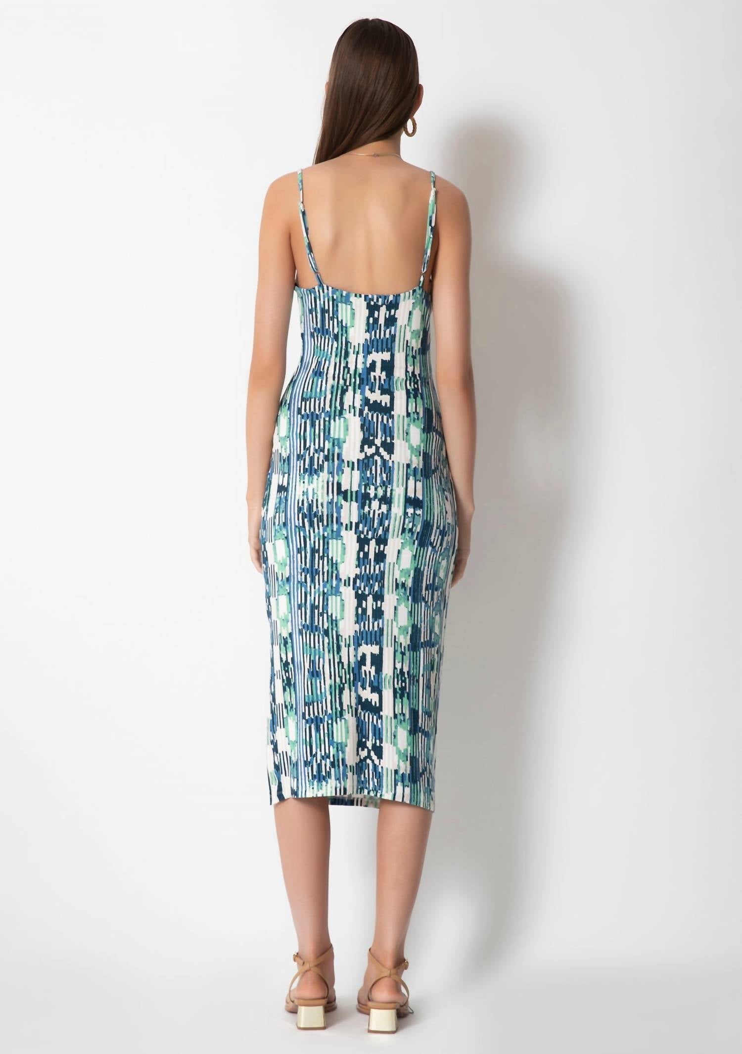 The perfect length dress does exist. Introducing the Jayci Dress by Tart Collections, a sleek yet playful tank style dress in an Ocean Ikat pattern for women. This bodycon midi dress is crafted from a Rayon Spandex blend (95% Rayon, 5% Spandex) and features a flattering squareneck. Designed with a convenient pull-on closure, it offers effortless wear. Care for it with a machine wash on a delicate cycle, lay flat to dry, and cool iron if needed. Model is 5'7" and wearing a size X-Small.