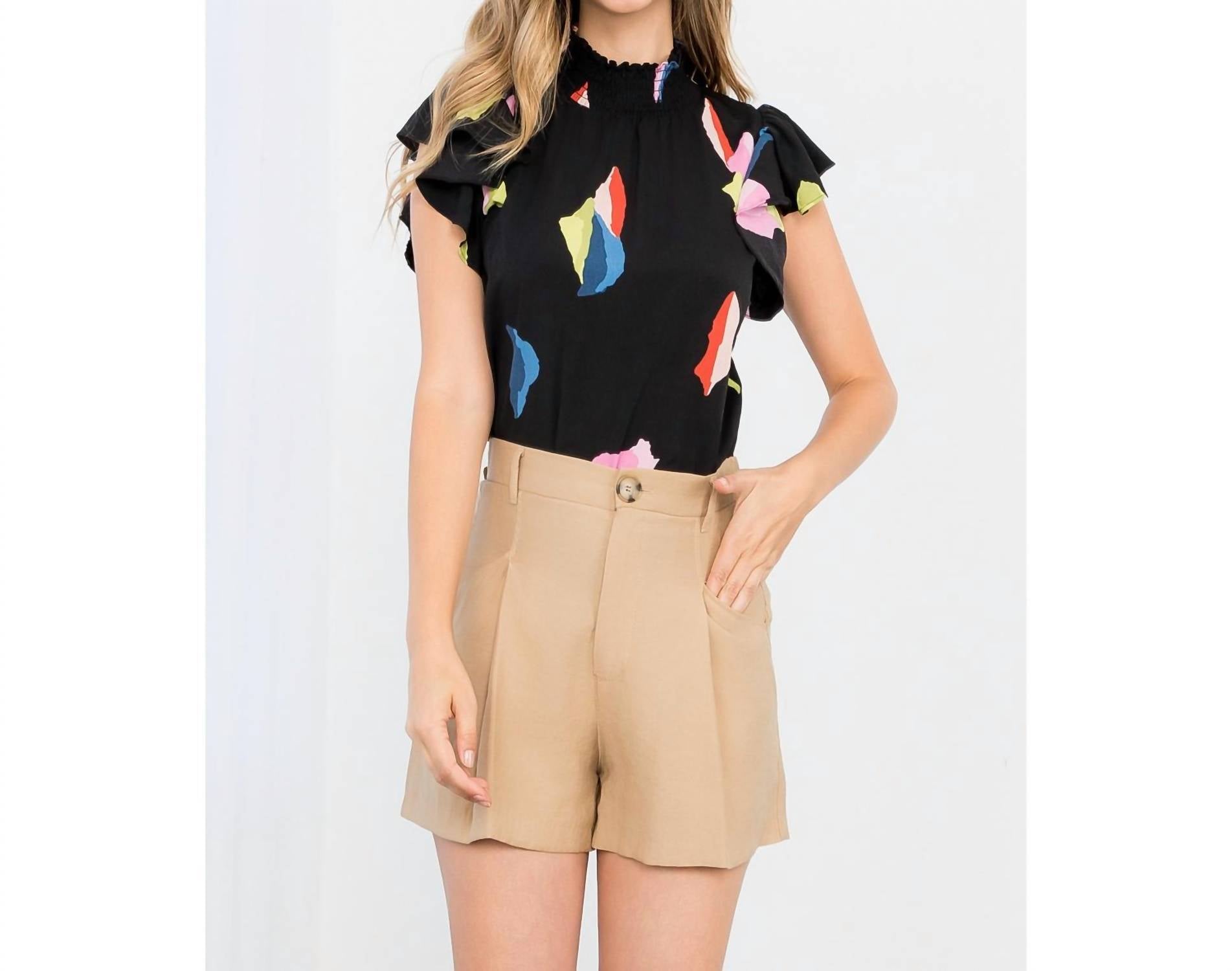 Discover the Flutter Sleeve Smocked Neck Top by THML, a minimalist blouse ideal for any special occasion. Designed with cap sleeves and a chic patterned finish, this top embodies elegance and style. Closure: Pull on. Care: Machine wash and line dry for easy maintenance.