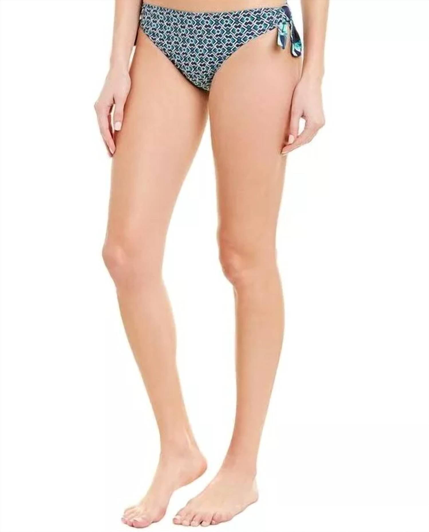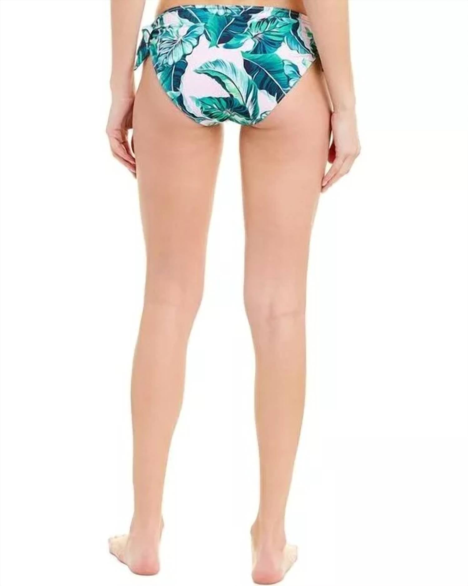 Reversible design. UPF 50+ Sun protection. Side ties. Moderate coverage. Fabric: 80% Nylon, 20% Spandex. Hand wash.