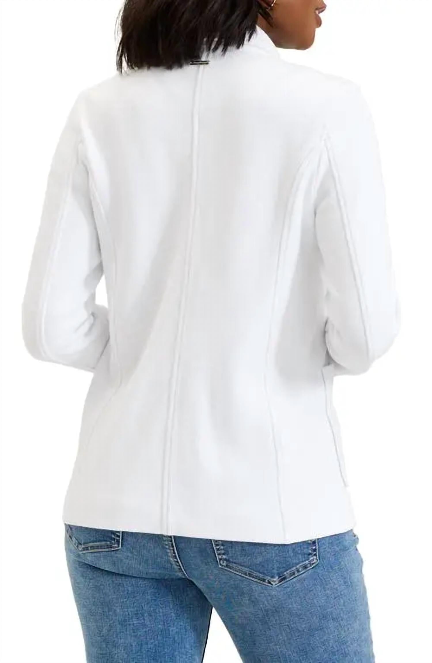Tailored to perfection, this blazer will be your go-to jacket for years to come. Elevate your travel wardrobe with the Tommy Bahama Aruba Stretch Cotton Knit Blazer, perfect for spring. This women's blazer features long sleeves and a classic solid pattern in a crisp white hue. Crafted from a soft cotton blend of 98% cotton and 2% spandex, it offers a tailored fit with a length of 25 inches. Made with a convenient one-button closure and practical front patch pockets. Care is simple with machine wash and tumble dry instructions, making it an effortless choice for workwear-inspired style.