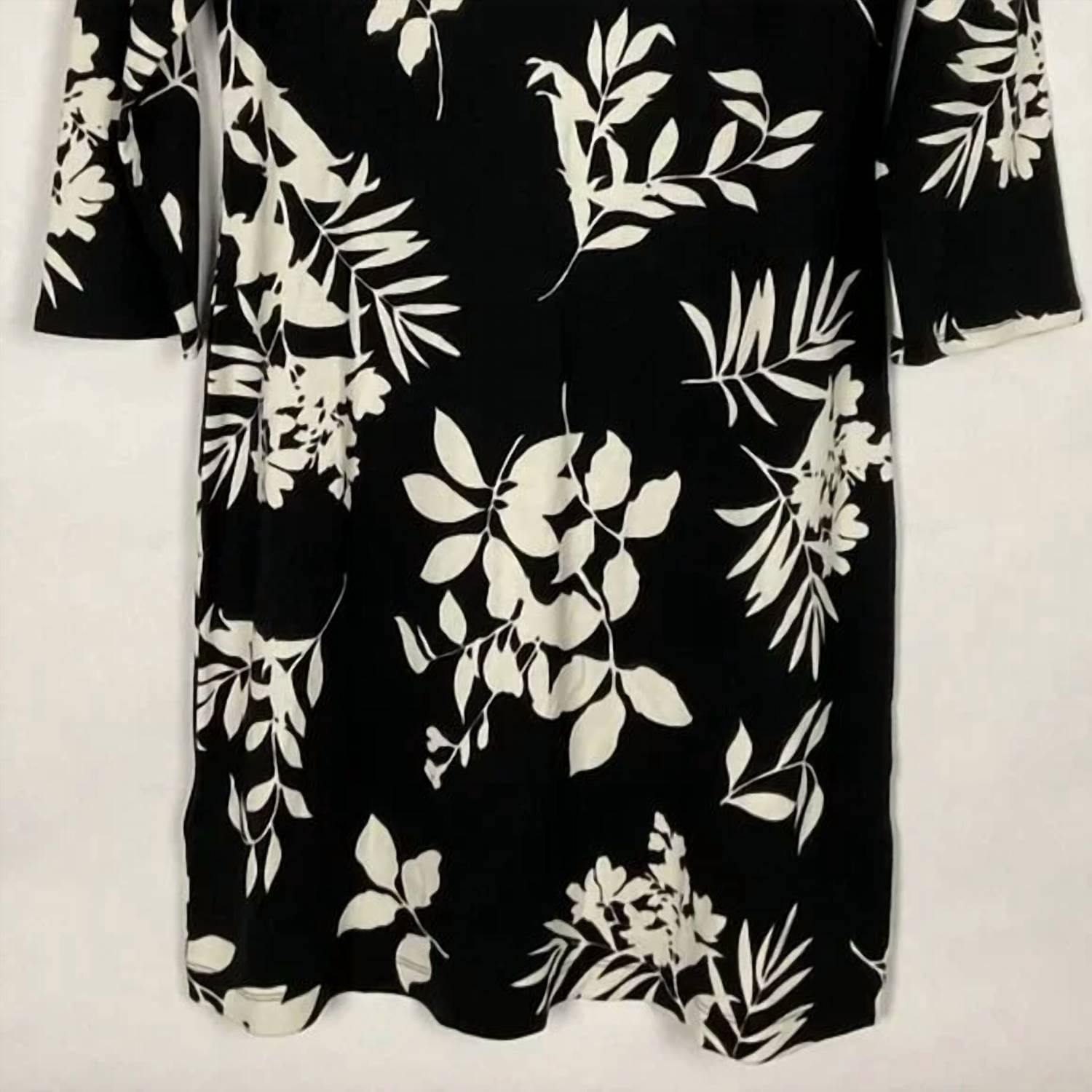 The kind of easy and flattering dress you'll be reaching for all season long. The Women's Darcy Off Tropic 3/4 Sleeve Dress by Tommy Bahama offers a flattering design in a chic black and white floral pattern. Made from a luxurious blend of 92% Modal TENCEL, 6% Nylon, and 2% Spandex, this elegant mini dress promises comfort and breathability. With a convenient zip closure and machine washability, it’s perfect for easy care. Elevate your vacation wardrobe with this wrinkle-resistant and lightweight dress, ideal for summer outings.