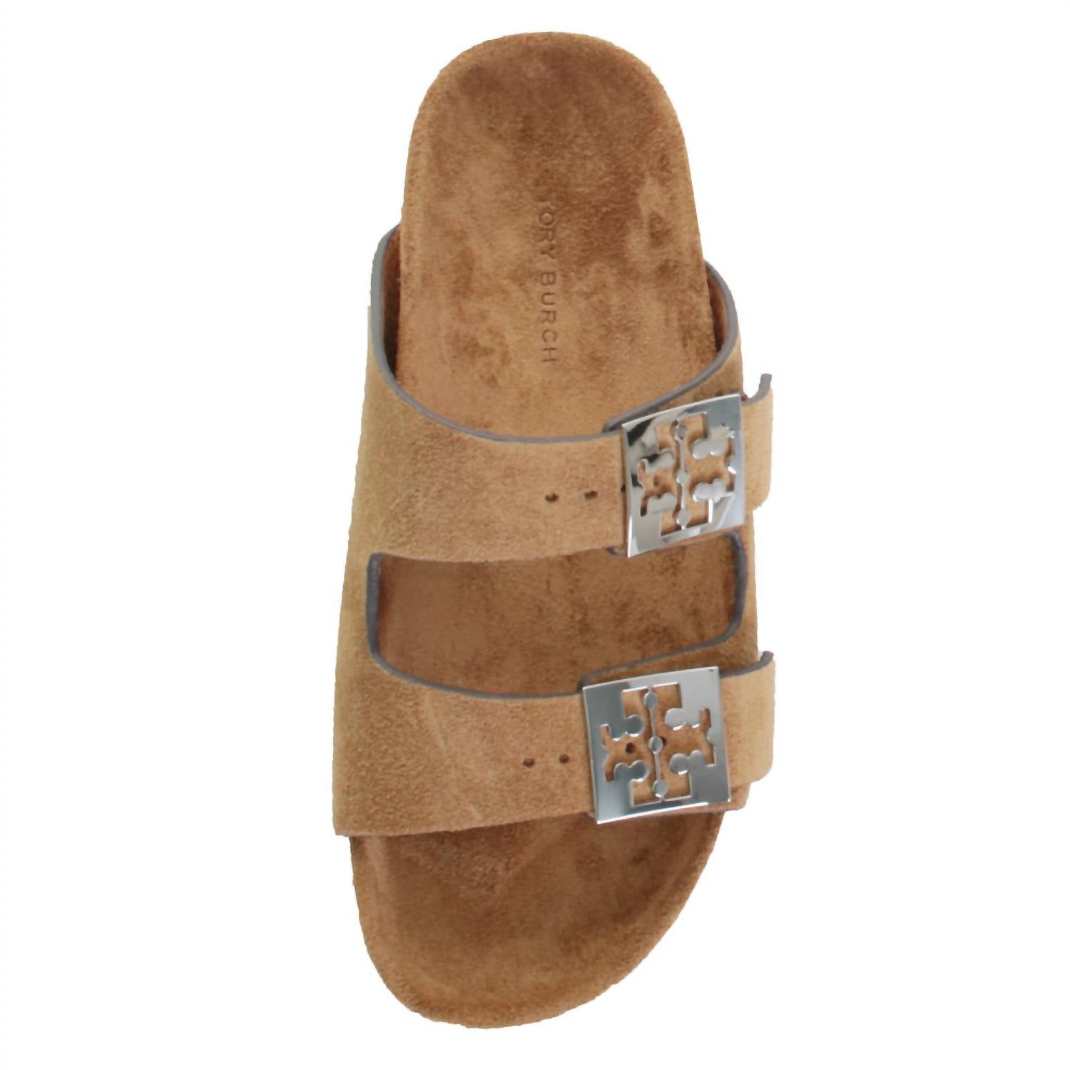 Classicly cute and all-day-wearable. We love this sandal. Step into effortless style with the Women's Mellow Slide Sandals by Tory Burch, your perfect summer companion. Designed in River Rock and Light Teak, these slides boast a suede upper and Napa leather lining, complemented by sleek metal strap hardware and a durable rubber sole. Imported for quality assurance, each pair arrives in a stylish box with a dust bag included, ensuring your sandals stay pristine. Embrace the flat heel and open toe design, perfect for enhancing your streetwear look during travels or holiday festivities.