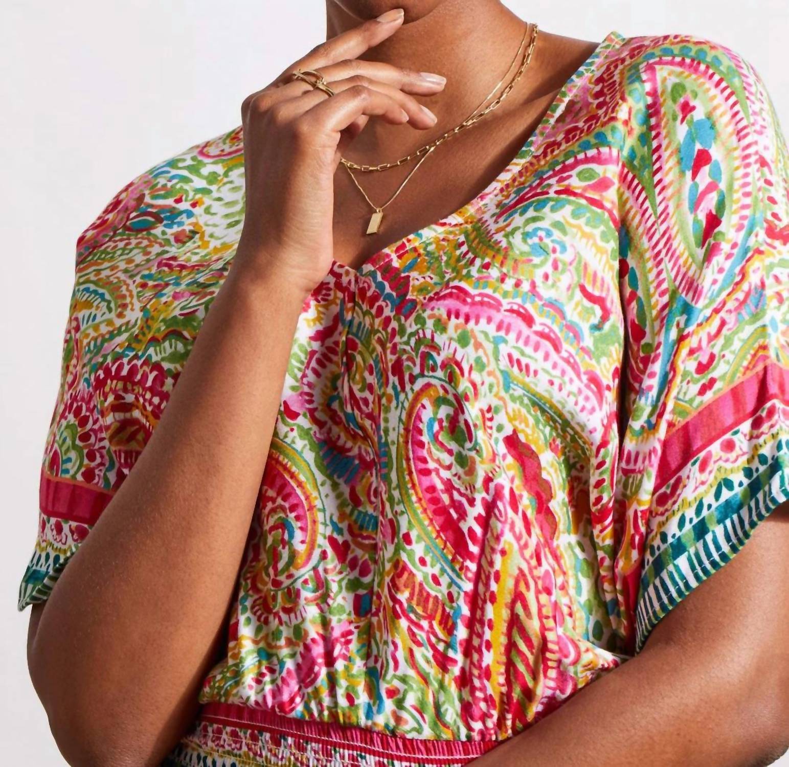 A short and breezy dress for those warmer days. Revitalize your wardrobe with the Printed V-neck Dolman Sleeve Dress by TRIBAL, a captivating choice for any summer occasion. Featuring short flowy dolman sleeves, this A-line mini dress in a vibrant raspberry paisley pattern offers a chic boho vibe. The composition is a comfortable blend of 97% Rayon and 3% Spandex, with a button closure at the back neck for a functional accent. For care, simply machine wash on a delicate cycle in cold water, line dry, and iron on medium if needed.