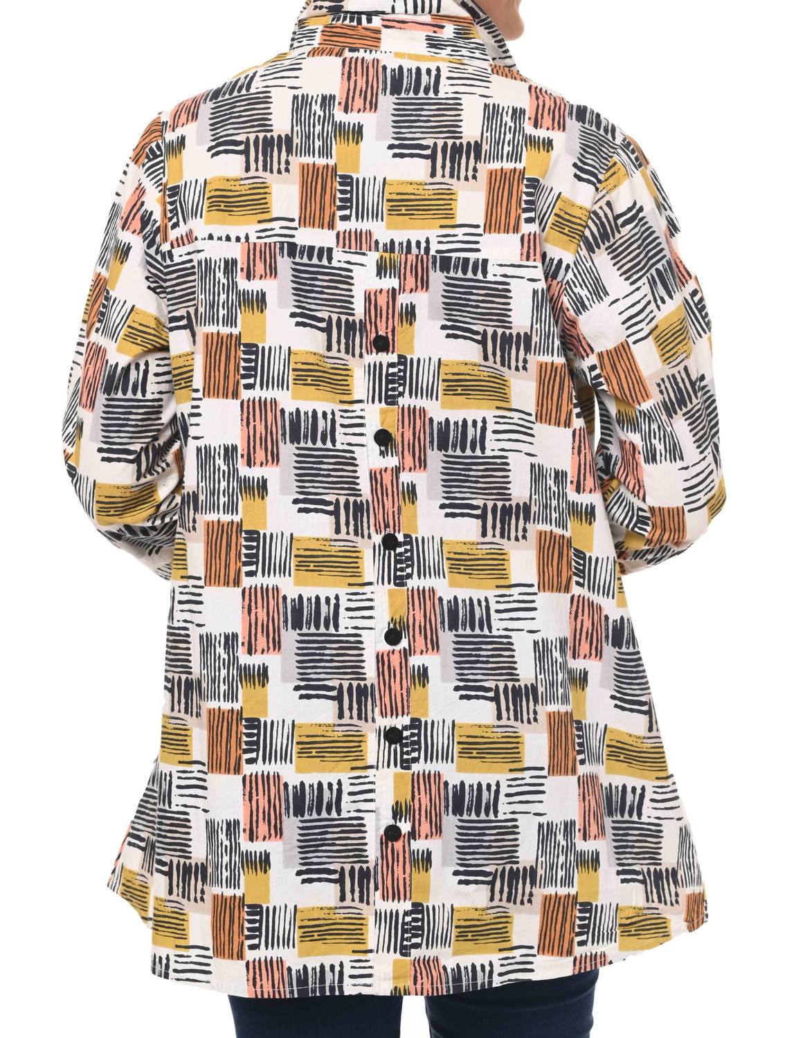 This button down shirt is comfortable yet polished. Introducing the Logan Shirt by Tulip Clothing in the vibrant Rhythm stripe pattern, perfect for your fall wardrobe. Tailored from 100% cotton, this long-sleeve A-line design features a collar neckline and button closure with stylish back and cuff details. Functional with front pockets, it offers various sizes with a chest measurement ranging from XS at 42" to XL at 50", and length from 31.5" to 33.5". Care for this exquisite piece by machine washing cold and line drying to maintain its crisp look.