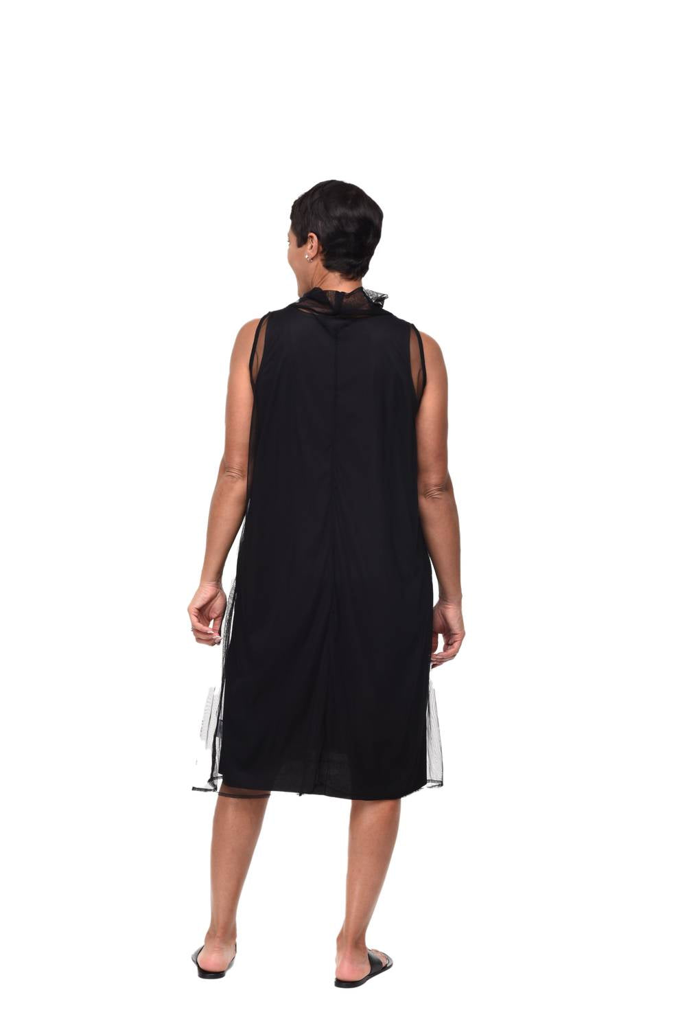 Just add slides or mules and you are good to go. Introducing the Mazlyn Dress by Tulip Clothing, a sophisticated choice for engagement occasions in timeless black with liner. This sleeveless, knee-length dress features a chic cowl neck and practical front pockets, enhanced by princess seams for a flattering fit. Designed with a convenient pull-on closure, it offers effortless elegance. For care, please dry clean only.