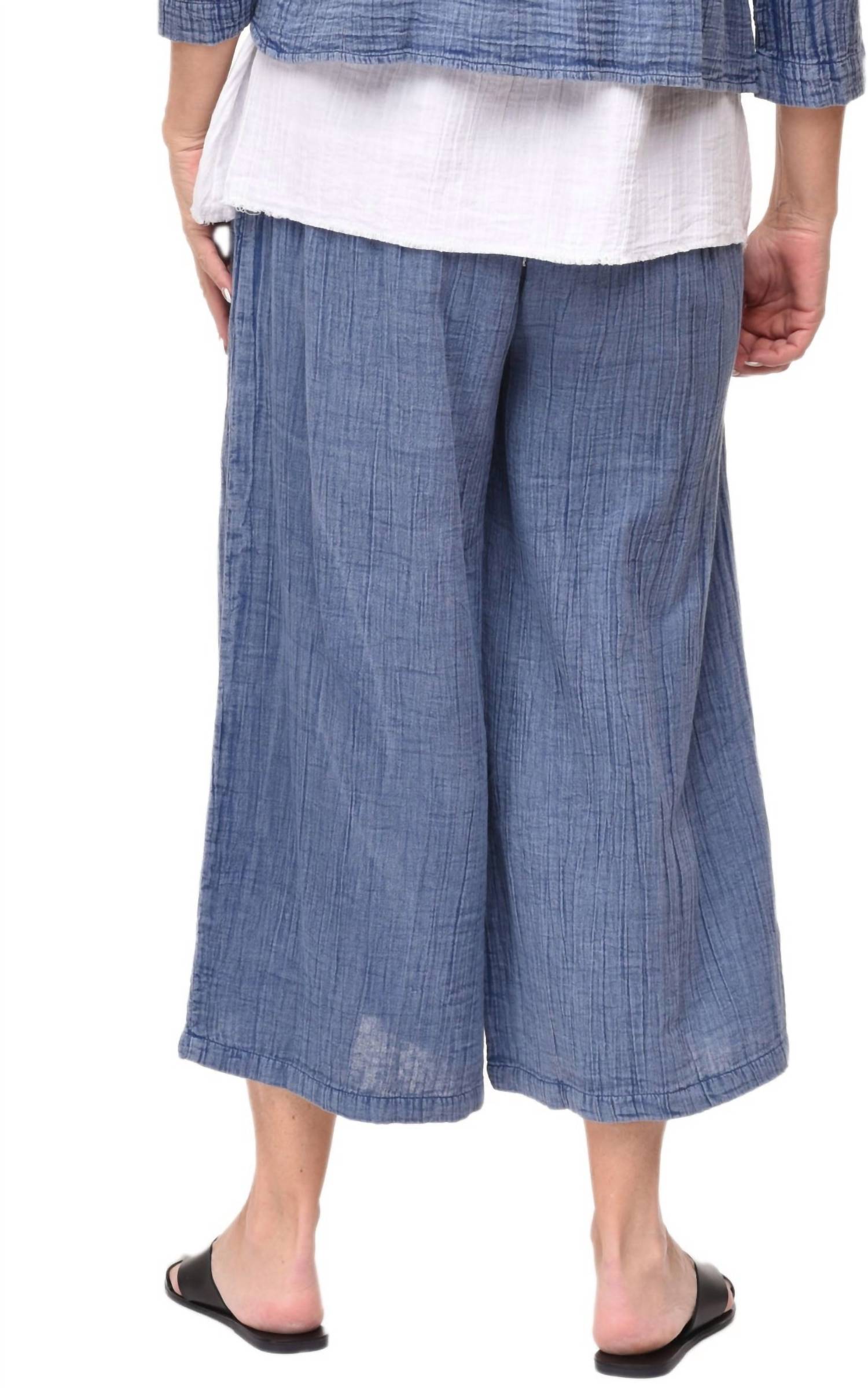 Introducing the High Waisted Palazzo Pant by Tulip Clothing, a chic addition to any wardrobe with its relaxed fit and minimalist design in French Blue. These wide-leg pants feature a pull-on closure for ease and front patch pockets, crafted entirely from 100% cotton gauze. Enjoy the comfortable high-rise design with a full elastic waist, making it a practical choice for spring vacations. With a variety of lengths from XS at 36.75" to XXL at 38", and a consistent inseam of 24.5" across all sizes, these pants also boast a versatile stretched waist from XS 44" to XXL 56.5".