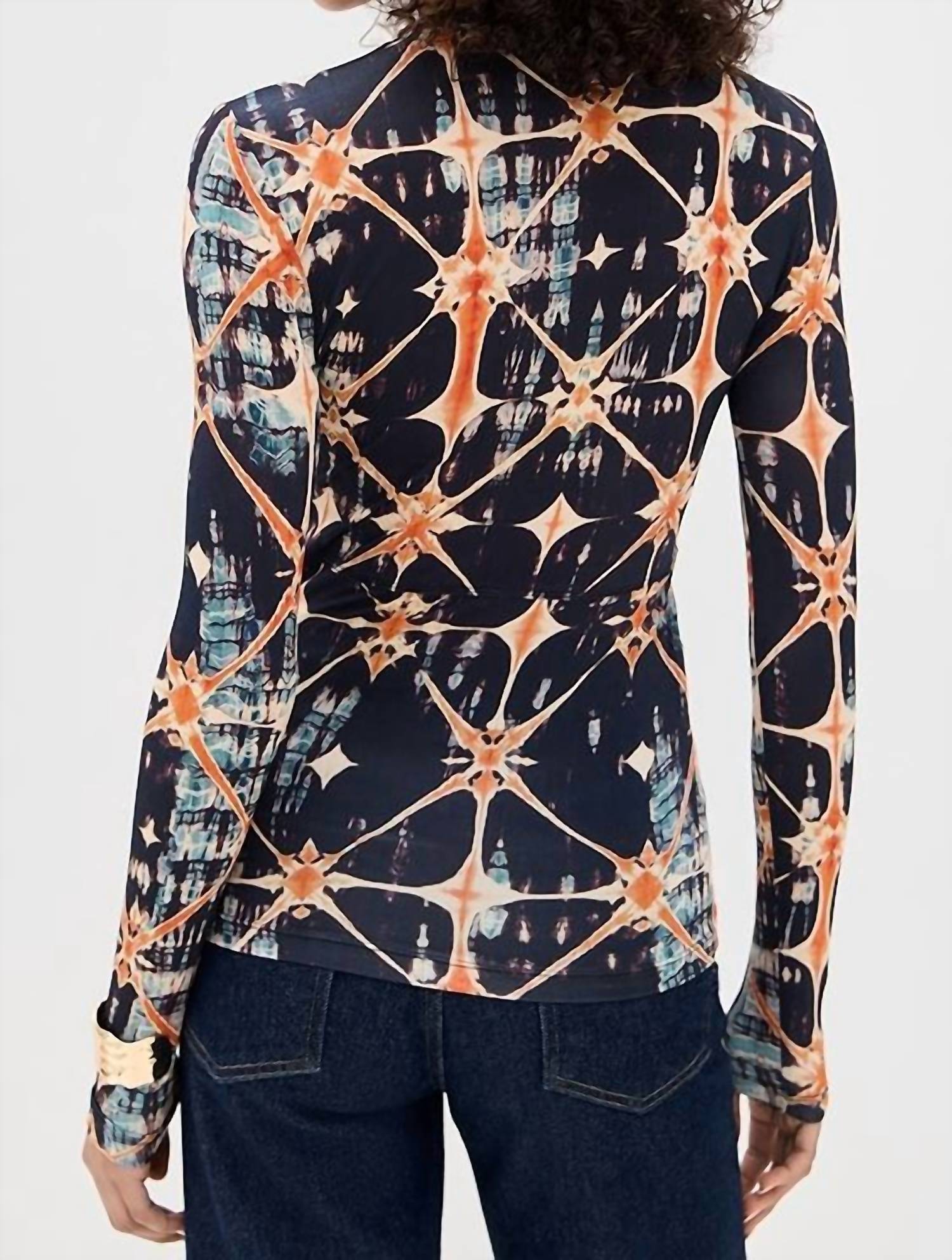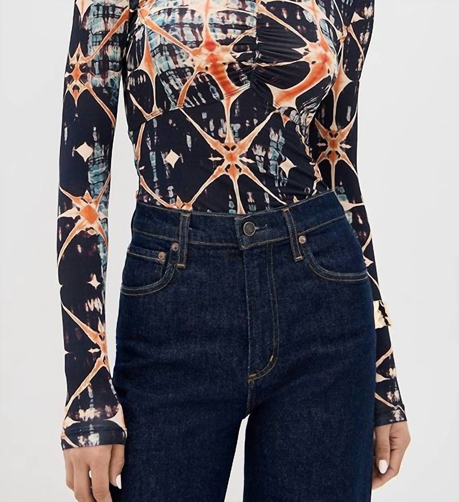 A long sleeve top you can wear with denim, skirts, well... just about anything! The Ulla Johnson Neri Long Sleeve Ruched Top is a standout piece in a vibrant Phoenix hue, perfect for any wardrobe. This top features long sleeves and a striking geometric print, with a crew neck and ruched seam at the front for added style. Crafted from a shell of 91% rayon and 9% elastane, its pull-on design offers ease and comfort with a garment length of 22.5 inches. Care: Machine wash warm; imported.