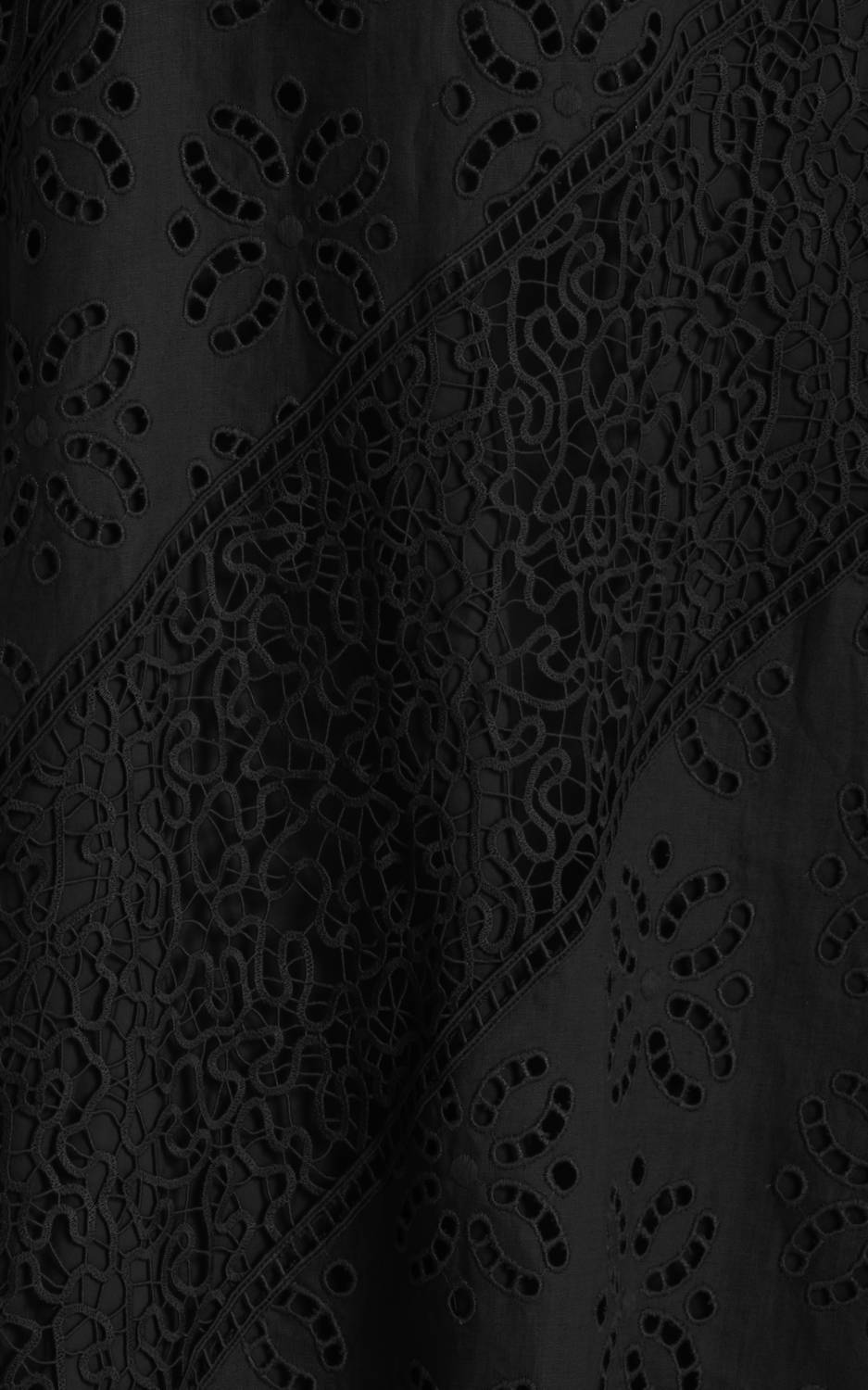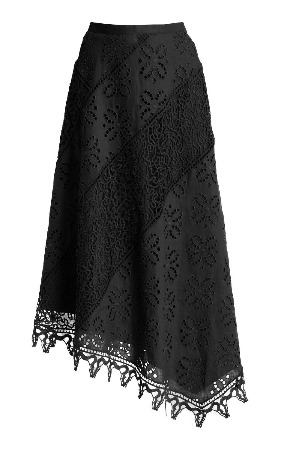 Who doesn't love a good maxi skirt? Enhance your evening style with the Solara Eyelet-lace Maxi Skirt by Ulla Johnson, available in classic black. This skirt features an elegant blend of eyelet floral lace and lace panels, offering a refined touch to your wardrobe. Crafted from 100% linen with a 100% cotton lining and polyester combo, it includes a fixed waistband and an asymmetrical hem for a flattering silhouette. Concealed side zip closure ensures easy wear, while hand wash instructions keep it looking pristine for every Valentine’s Day and spring event.