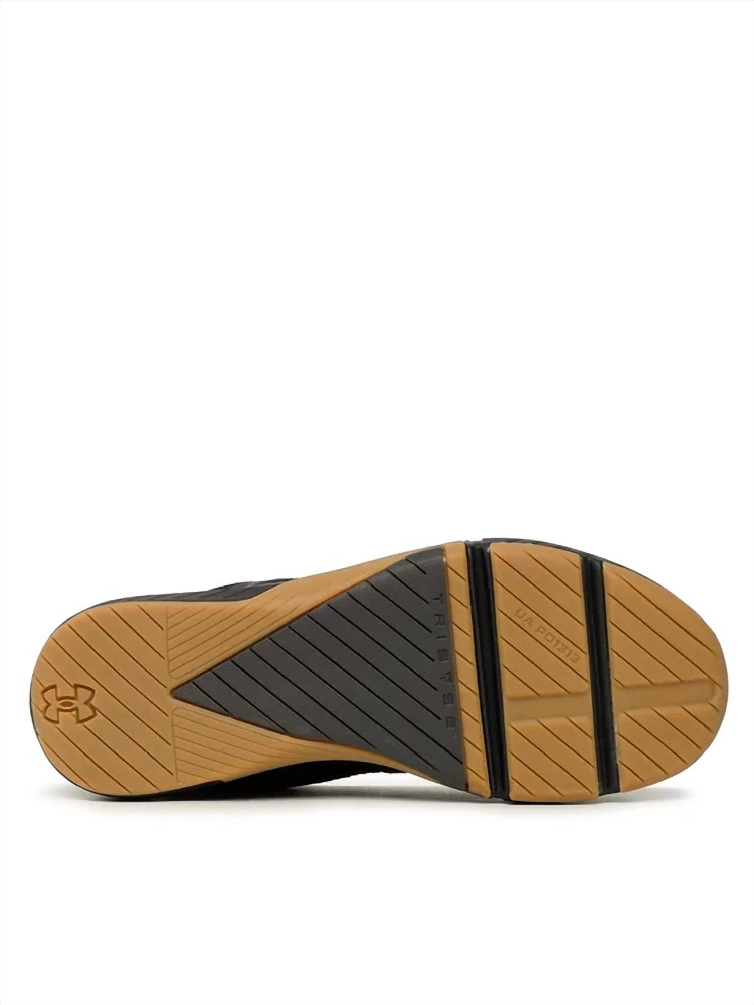 Experience ultimate performance with the Men's Tribase Reign Training Shoes by Under Armour, expertly crafted for dynamic athletic endeavors. Featuring UA WARP upper technology, they offer reliable lockdown and durability, while the external heel clip and internal counter ensure stability and support. The full-length Micro G® foam midsole provides responsive cushioning, complemented by the UA TriBase™ that promotes natural motion and ground contact. Constructed with a synthetic mesh and rubber composition, these black athletic shoes promise powerful floor grip, complete with a full-rubber outsole for added abrasion resistance and a low-to-the-ground build for enhanced power transfer.