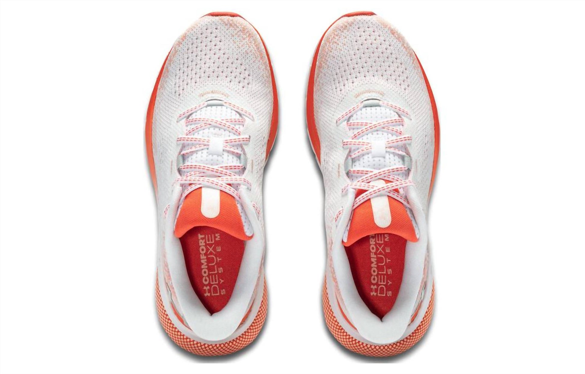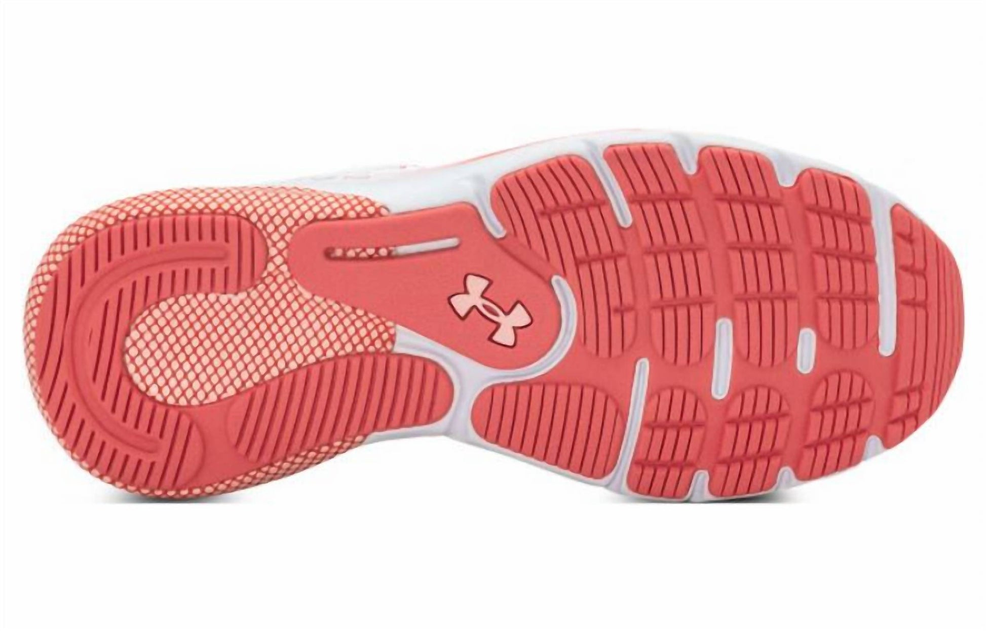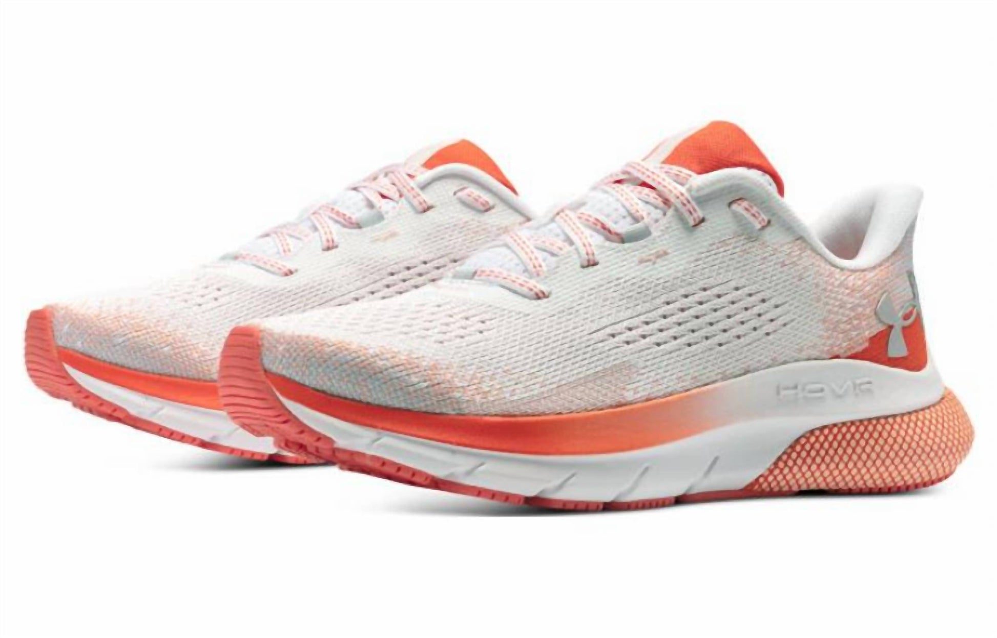 Workout in style with these adorable athletic sneakers. Elevate your running experience with the Women's HOVR Turbulence Running Shoes by Under Armour, an ideal choice for distance runners seeking a perfect blend of cushion, bounce, and durability. These shoes feature a breathable knit upper for lightweight containment and a deluxe comfort system sockliner for superior step-in comfort. Enjoy responsive UA HOVRâ„¢ cushioning that reduces impact and returns energy, enhancing your efficiency on every stride. The durable rubber outsole offers reliable traction and flexibility, while the stylish white and pomegranate color combination ensures you look as good as you feel.