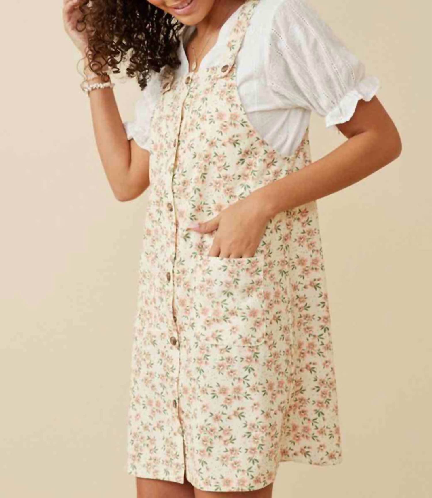 The perfect mini dress for those warmer months. The Bailey Floral Bibs Dress by Hayden LA is a stunning addition to your summer wardrobe, perfect for a dinner party. This sleeveless, boho chic mini dress features a floral pattern and a flattering scoop neckline, designed in a shift silhouette. Made from 90% polyester, 8% nylon, and 2% spandex, it offers both comfort and style, complete with convenient pockets and a button closure. For care, hand wash and line dry to maintain its elegant cream color and intricate design.
