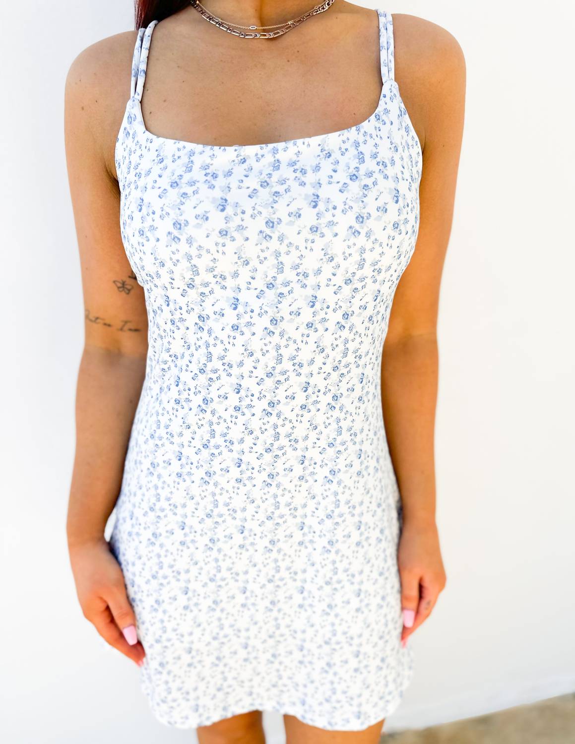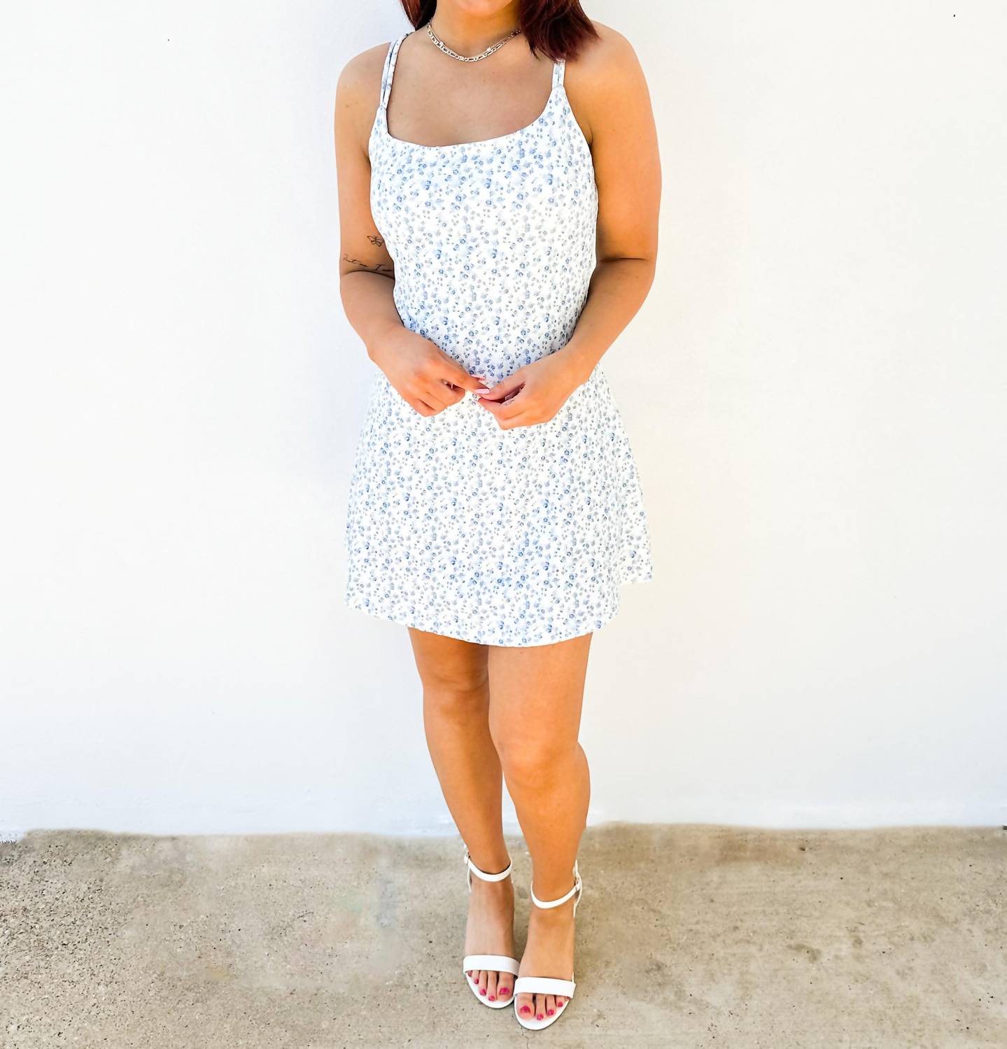 A short and breezy dress for those warmer days. Introducing the Get To Moving Floral Print Back Cross Dress by TCEC, a chic addition to your spring wardrobe. This sleeveless mini dress features a playful ditsy floral print with a stylish back cross design, complemented by a scoop neckline and A-line silhouette. Crafted from 95% Polyester and 5% Spandex, it offers a comfortable fit ideal for vacation adventures. Closure: Pull on. Care: Machine wash and tumble dry.