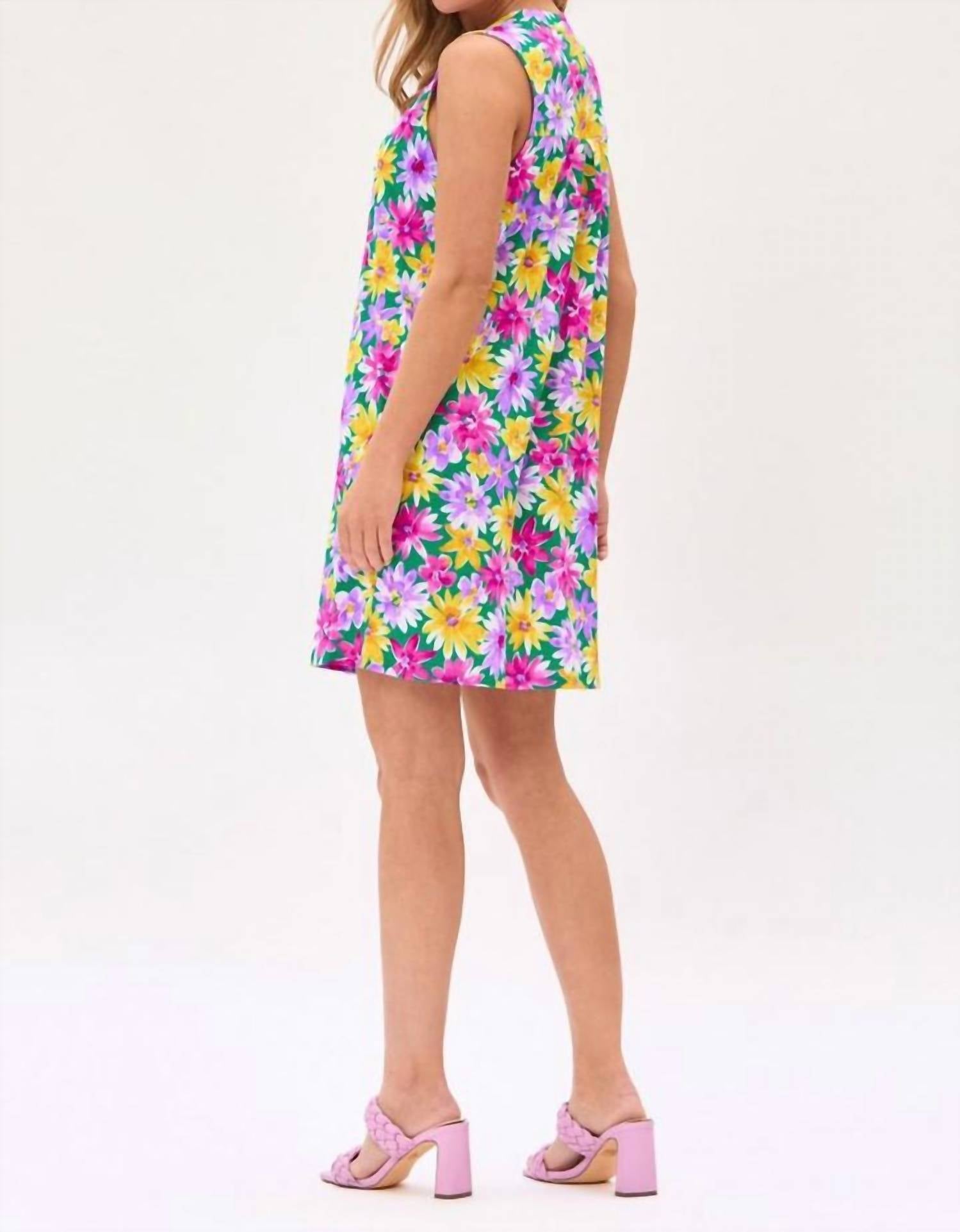 A short and breezy dress for those warmer days. Experience effortless elegance with the Lizzy Sleeveless Tank Dress by Dear Scarlett, perfect for any summer holiday party or boho chic occasion. This mini dress, crafted from premium 96% Polyester 4% Spandex, features a vibrant floral pattern for a touch of femininity and a shift silhouette for maximum comfort. With a collar neckline and convenient pockets, it's designed for added style and functionality. Closure: Pull-on style. Care: Machine wash.