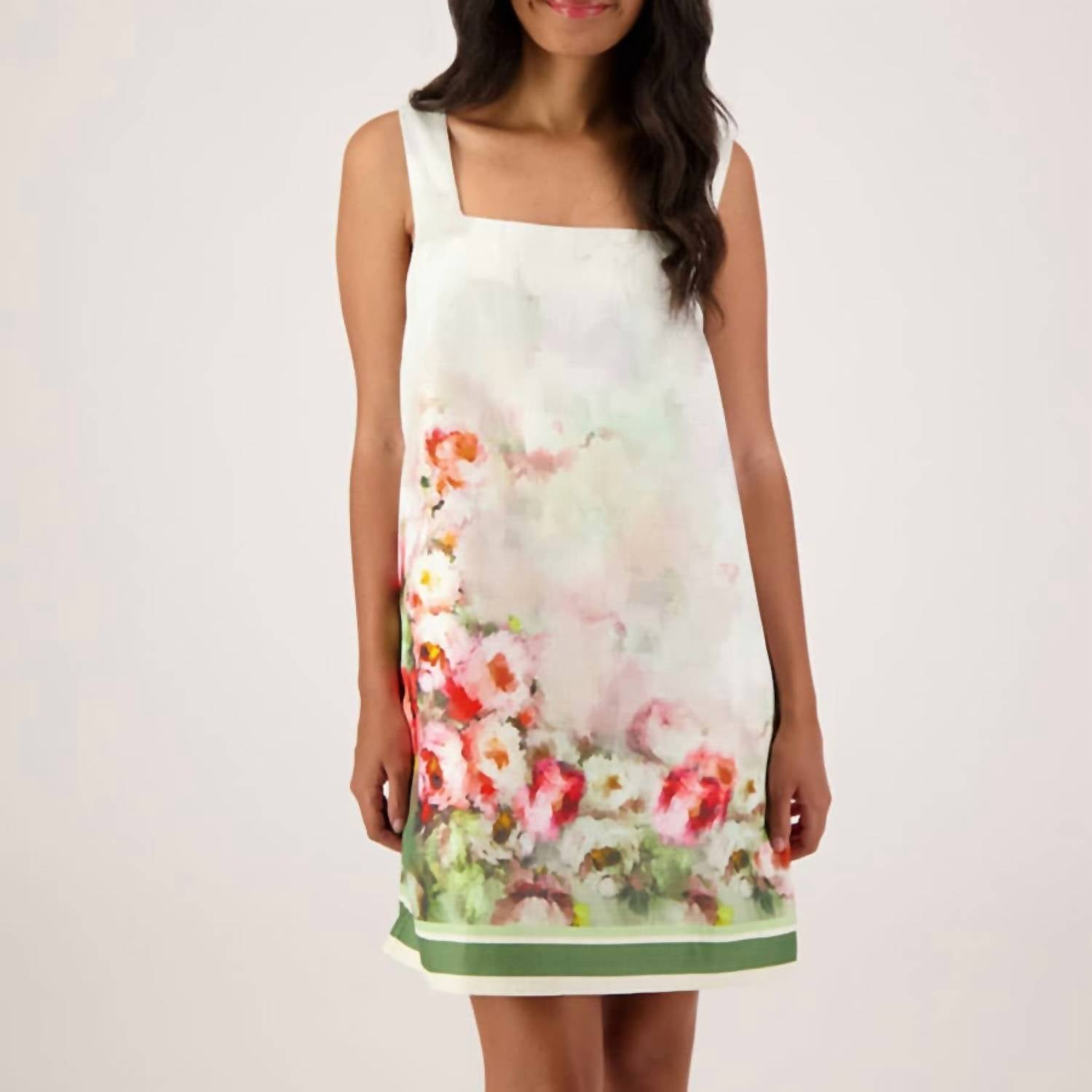 A short and breezy dress for those warmer days. The Cemile Floral Tank Dress brings effortless charm to any warm-weather outing. Designed in a delicate dove hue, this sleeveless mini dress features an A-line silhouette and a chic square neckline for a flattering fit. Adorned with a soft floral pattern that enhances its feminine appeal, the dress offers a streamlined finish without pockets, making it a versatile staple for your wardrobe.