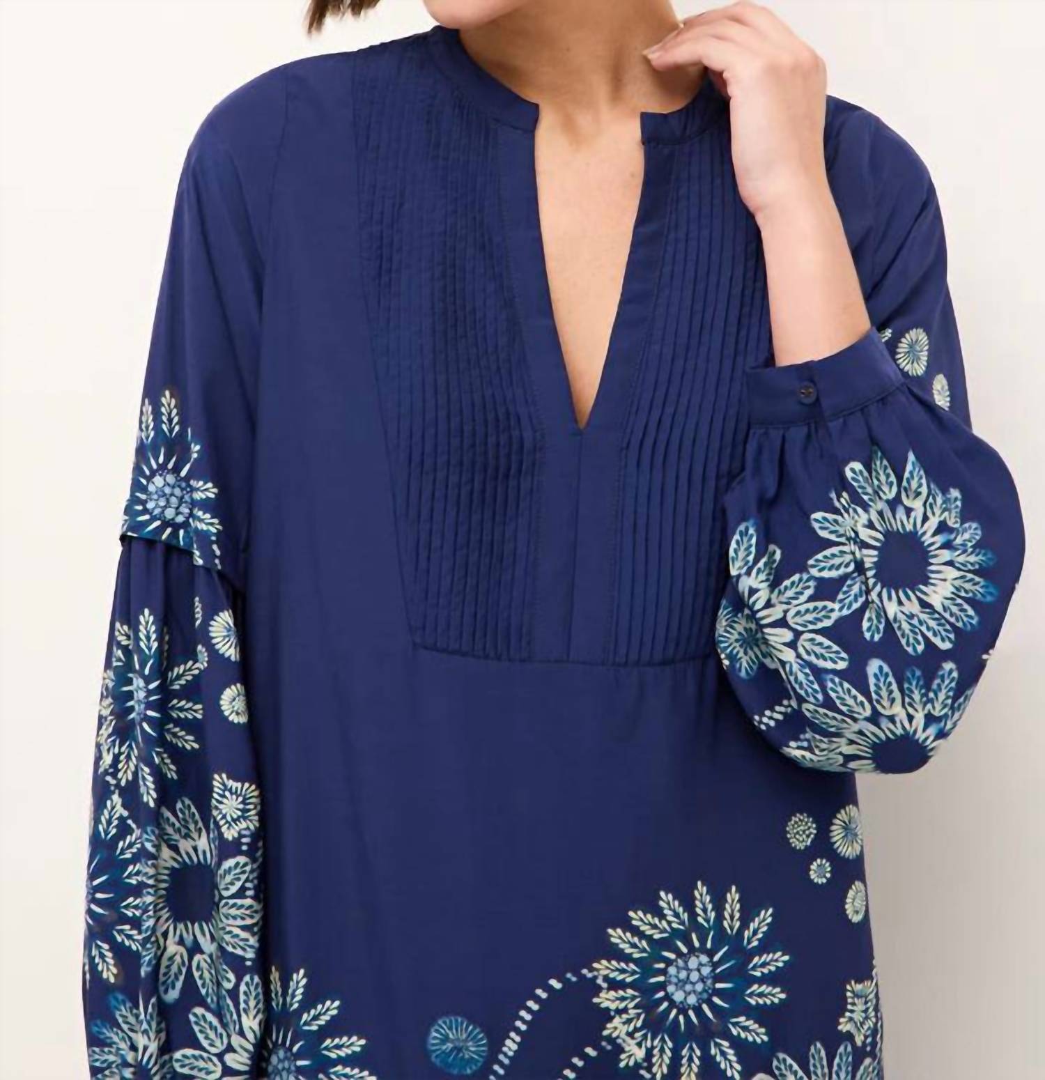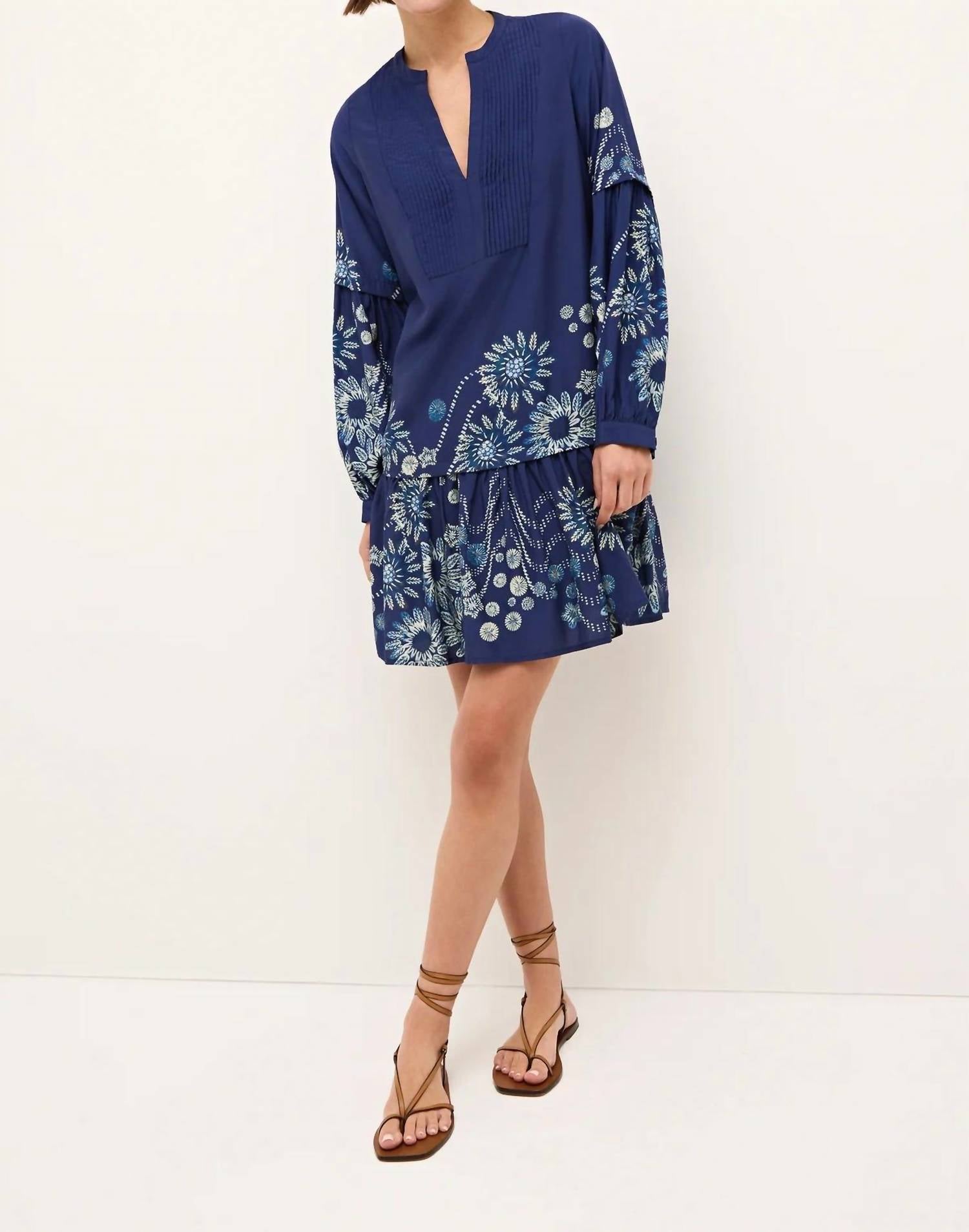 The perfect mini dress for those warmer months. Introducing the Frannie Dress by Marie Oliver, a chic and comfortable addition to any wardrobe. This mini dress features long sleeves, a slip-on silhouette, and a V-neckline, with a flattering A-line shape and a drop-waist tunic style. Expertly crafted from 69% ecovero rayon and 31% silk, it showcases a floral pattern in the color Astra. Ideal for travel or holiday occasions, it includes the convenience of pockets. Care: Hand wash with gentle detergent and hang dry or opt for dry cleaning.