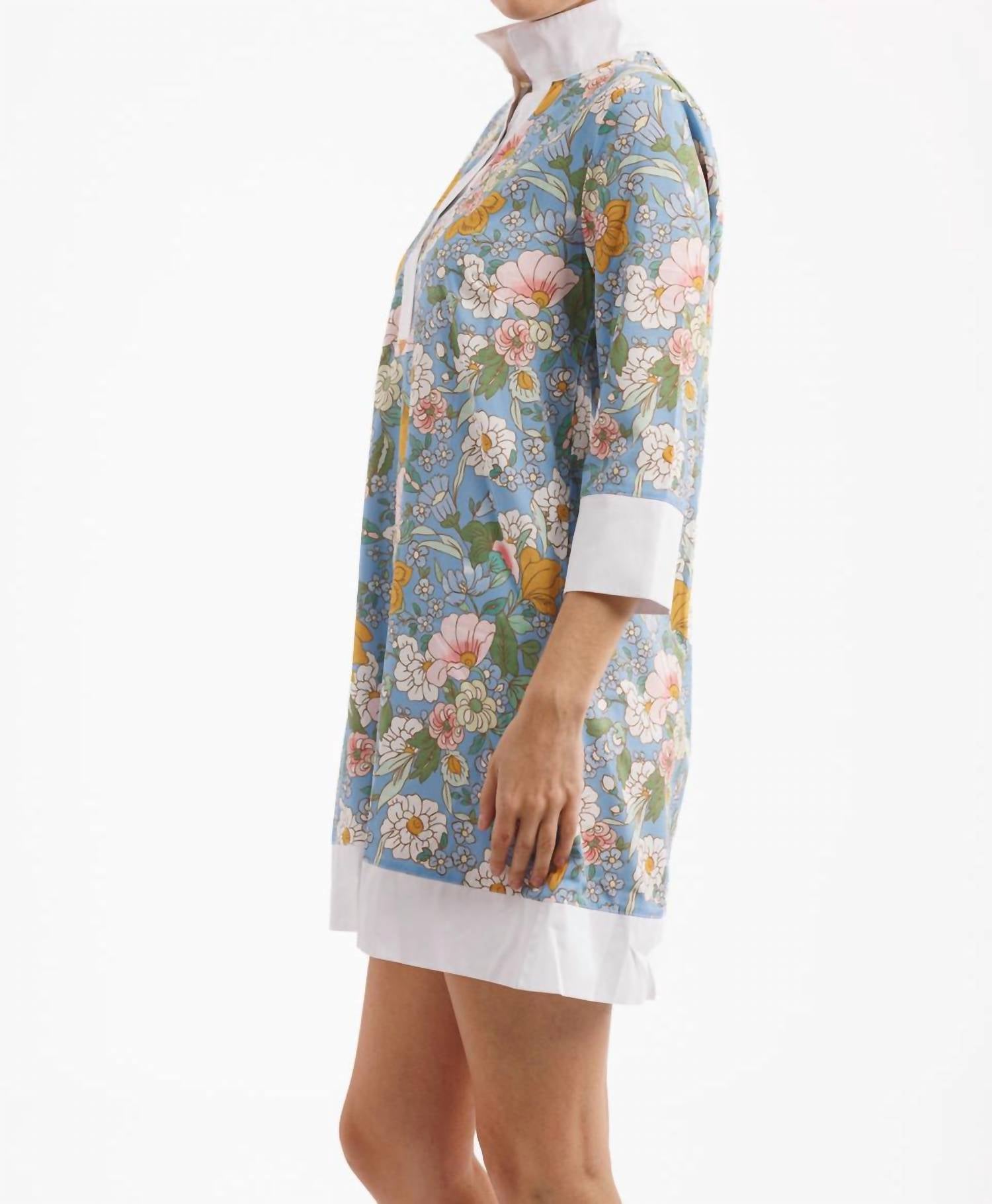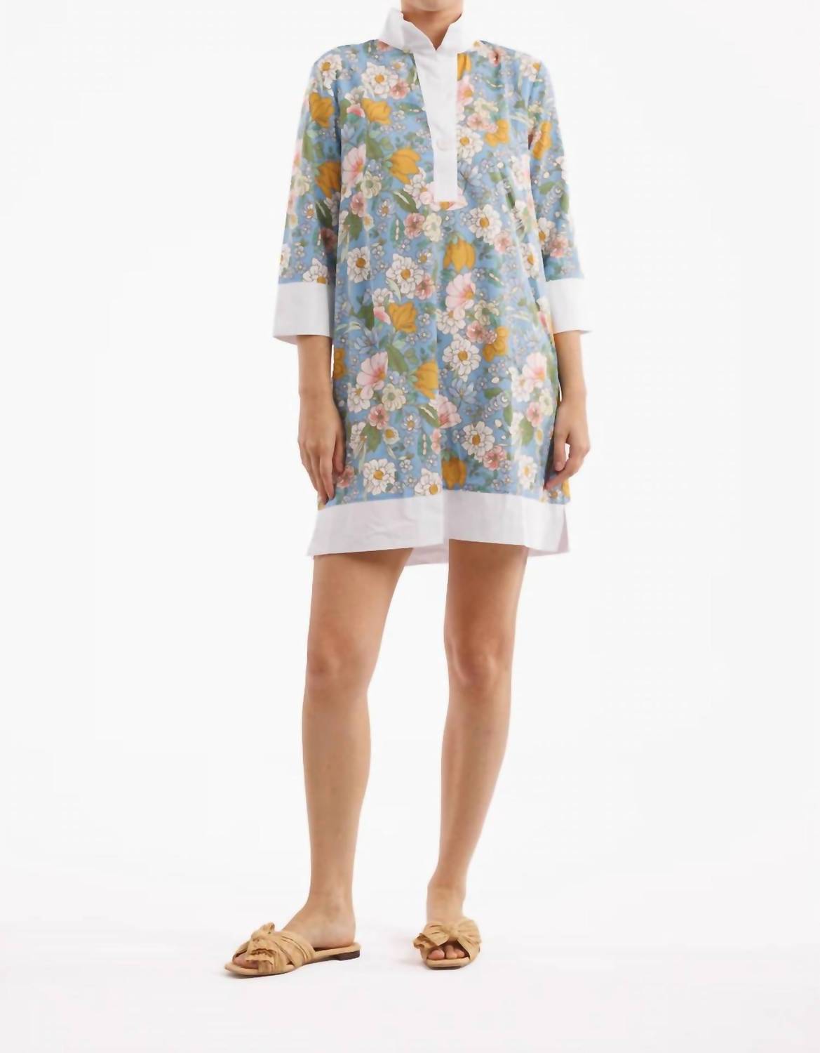 The kind of easy and flattering dress you'll be reaching for all season long. Meet the Simone Dress by SMITH & QUINN, a vibrant addition to any wardrobe with its marigold pot hue and patterned design, perfect for workwear or vacation. Featuring three-quarter sleeves and a collar neckline, this mini tunic shirt dress offers both style and comfort. Crafted with woven stretch material, it closes with buttons for an effortlessly chic look. Care instructions include machine wash and tumble dry for easy maintenance. 85% Polyester 15% Elastane.