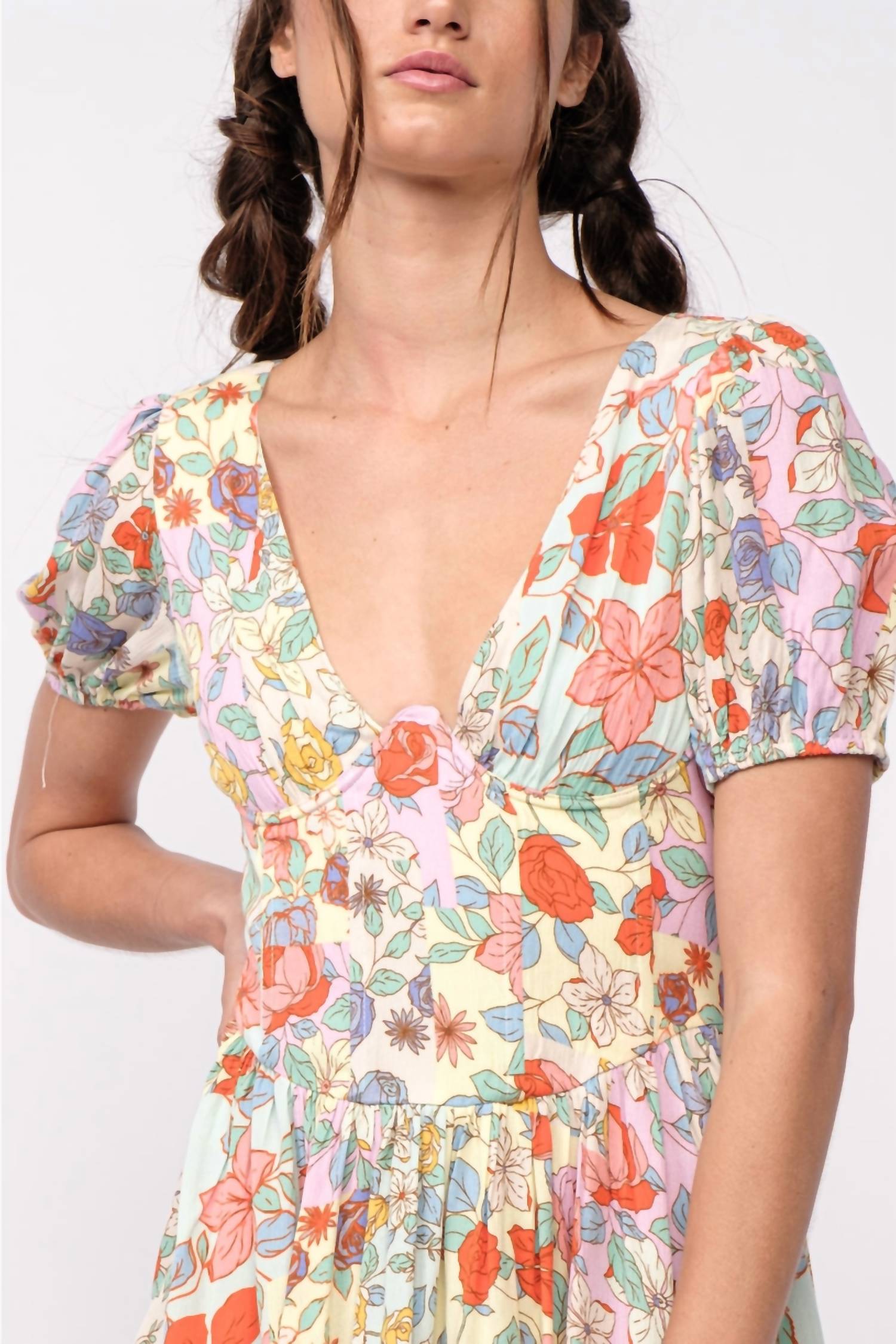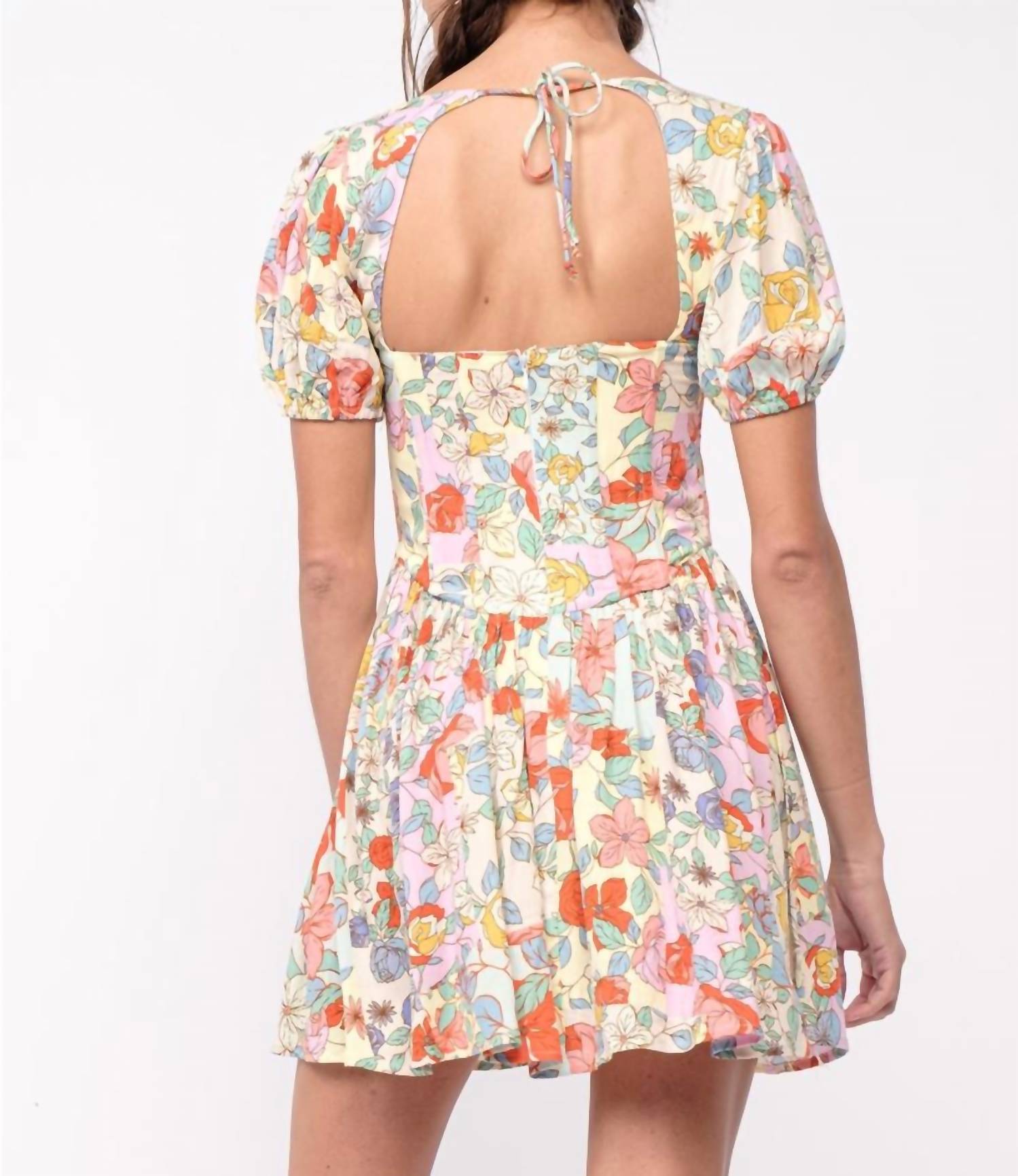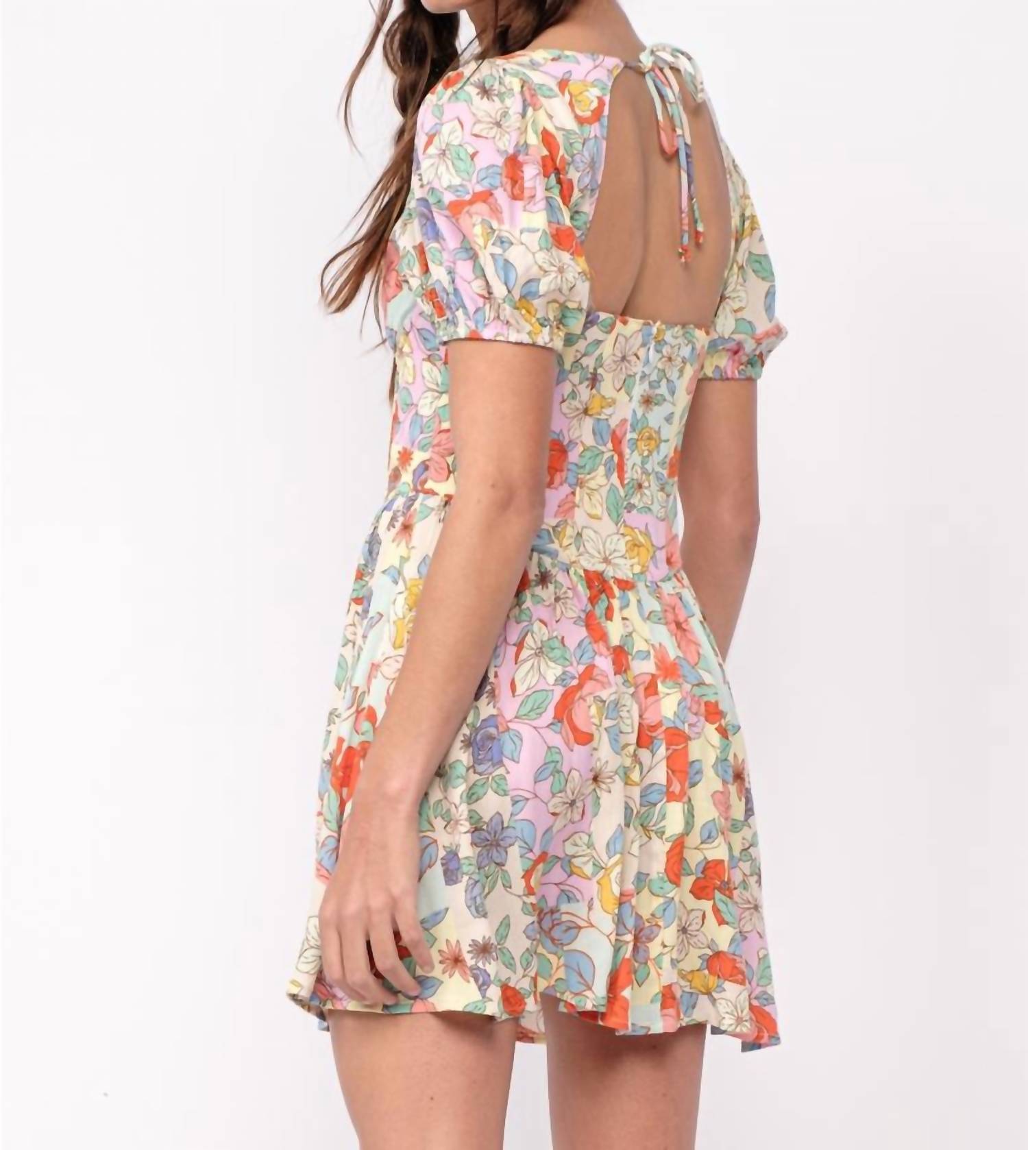 The perfect mini dress for those warmer months. Step into elegance with the Wire Corset Floral Dress by Sky to Moon, showcasing a beautiful Grove Patch floral print. This mini dress features a flattering V-neck and an A-line silhouette, accentuated with short sleeves and an open back. Made of 100% Rayon, the dress offers comfort and style with its secure zip closure.