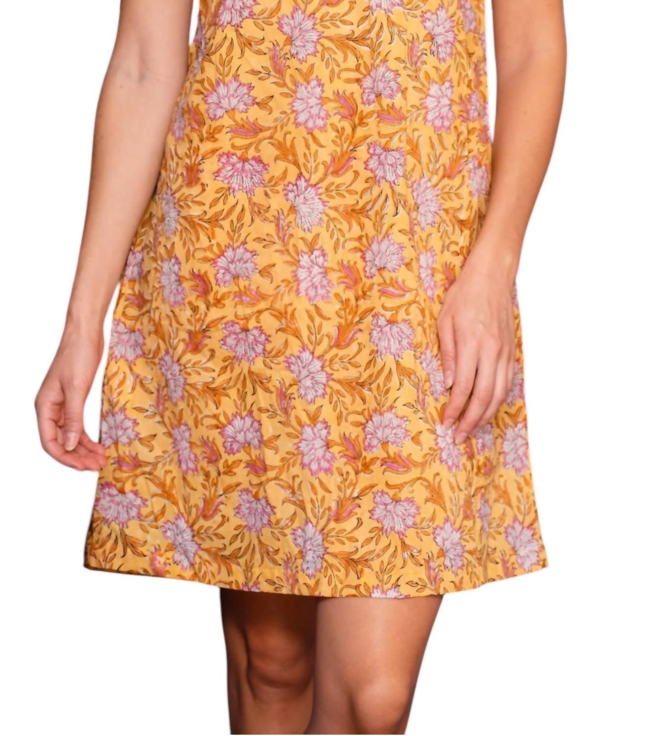 A short and breezy dress for those warmer days. Meet the Sally Floral V-neck Dress by Just Darviny, your perfect summer companion with a Boho Chic flair in vibrant Sunflower. This sleeveless mini dress is crafted from 100% cotton and features a charming smocked neckline for a relaxed fit. With a shift silhouette and pull-on design, it effortlessly combines style and comfort, ideal for festive occasions like a 4th of July holiday party. Care: Machine wash cold on delicate and lay flat to dry for lasting wear.