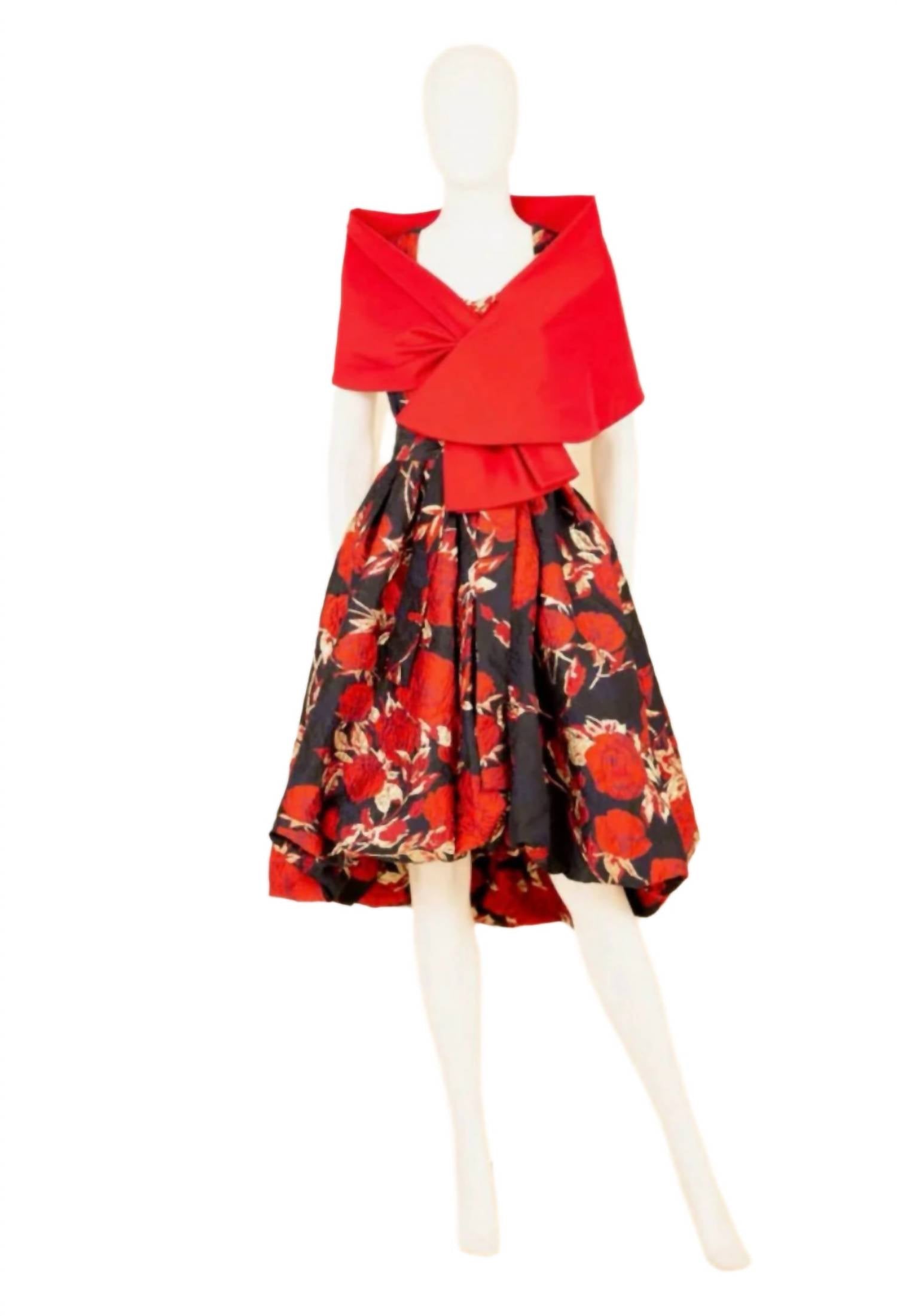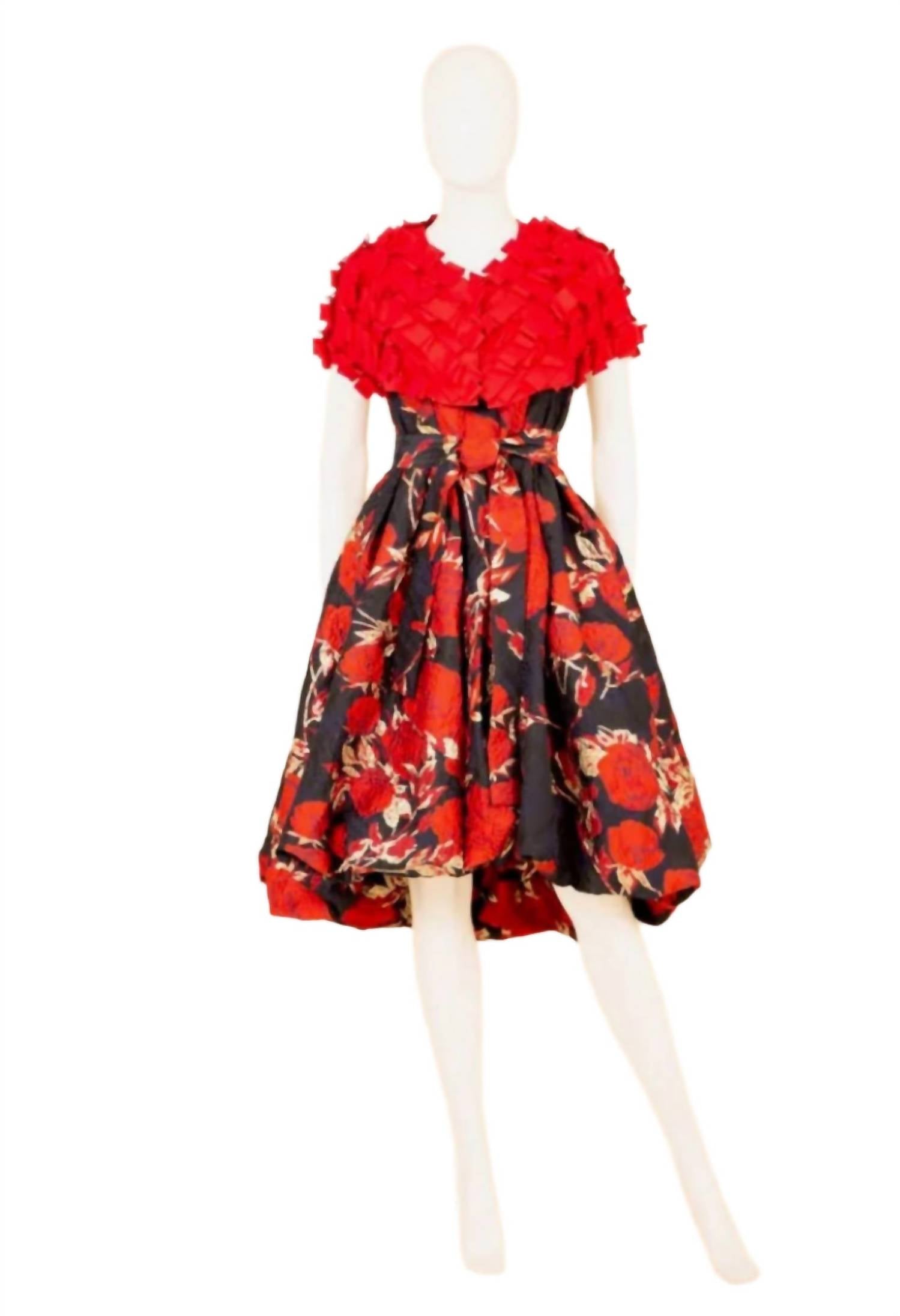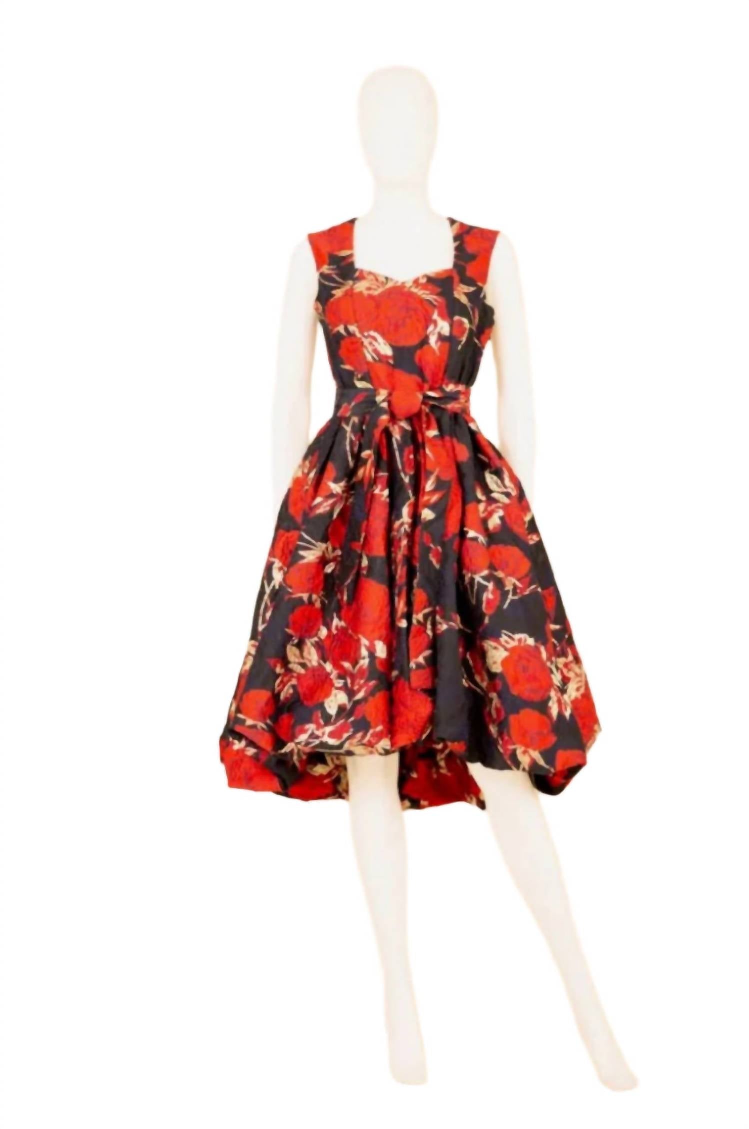 The kind of easy and flattering dress you'll be reaching for all season long. Make a statement at any cocktail party with the Samuel Dong Jacquard High-low Dress in Red Rose. This sleeveless A-line mini dress features a floral pattern and a chic sweetheart neckline, perfectly embodying a minimalist spring trend. Crafted with a yarn-dyed Jacquard fabric, this fully lined dress includes convenient pockets for added functionality. Complete the look by pairing it with the separately sold accessories like the Shawl F22001, Petal Shawl F19041, or Organza Bolero S19133.