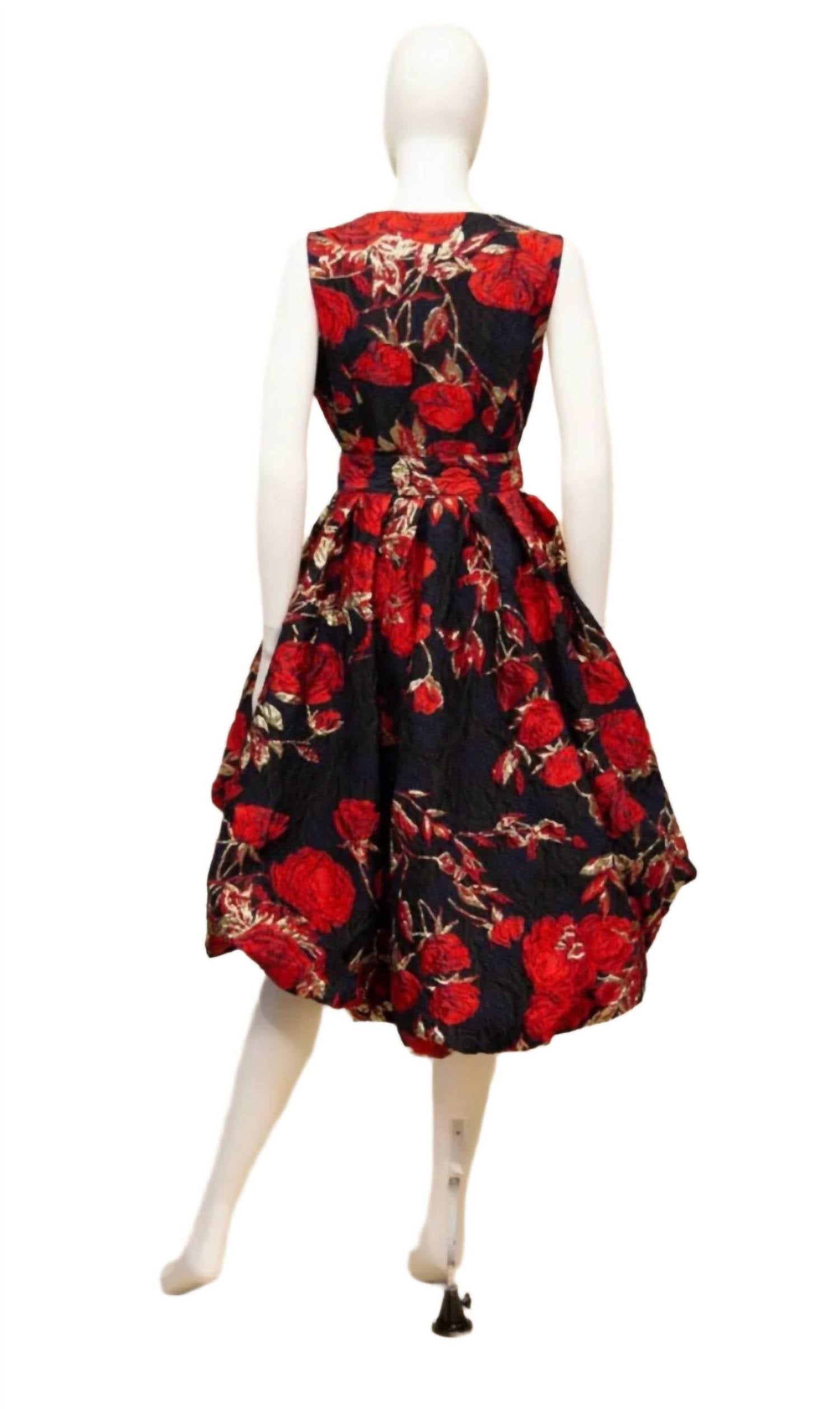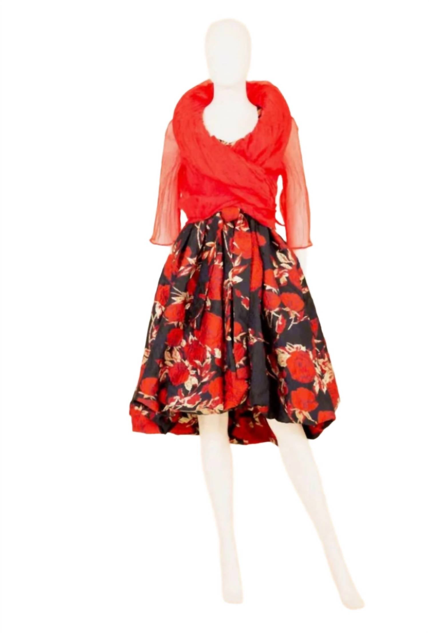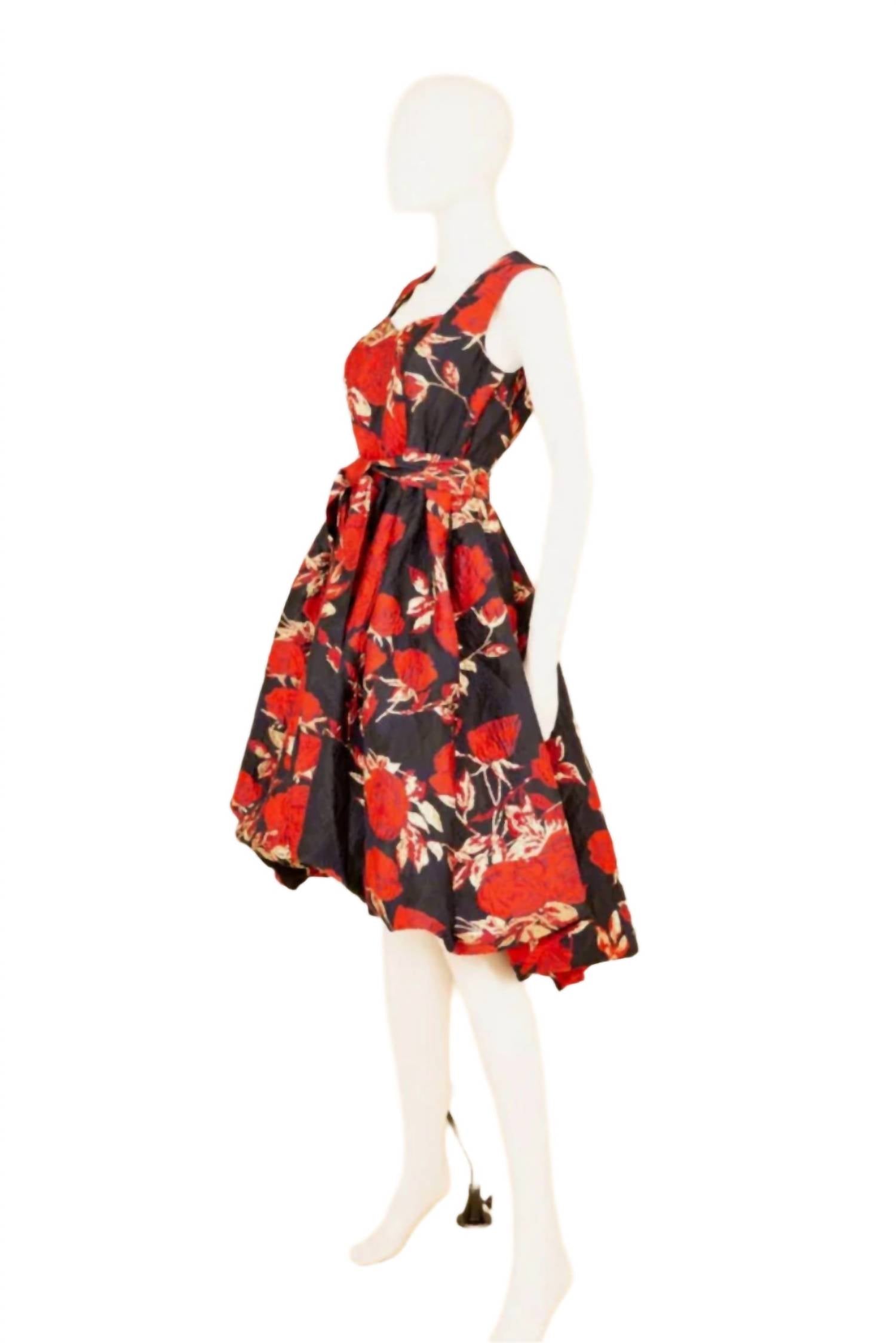 The kind of easy and flattering dress you'll be reaching for all season long. Make a statement at any cocktail party with the Samuel Dong Jacquard High-low Dress in Red Rose. This sleeveless A-line mini dress features a floral pattern and a chic sweetheart neckline, perfectly embodying a minimalist spring trend. Crafted with a yarn-dyed Jacquard fabric, this fully lined dress includes convenient pockets for added functionality. Complete the look by pairing it with the separately sold accessories like the Shawl F22001, Petal Shawl F19041, or Organza Bolero S19133.