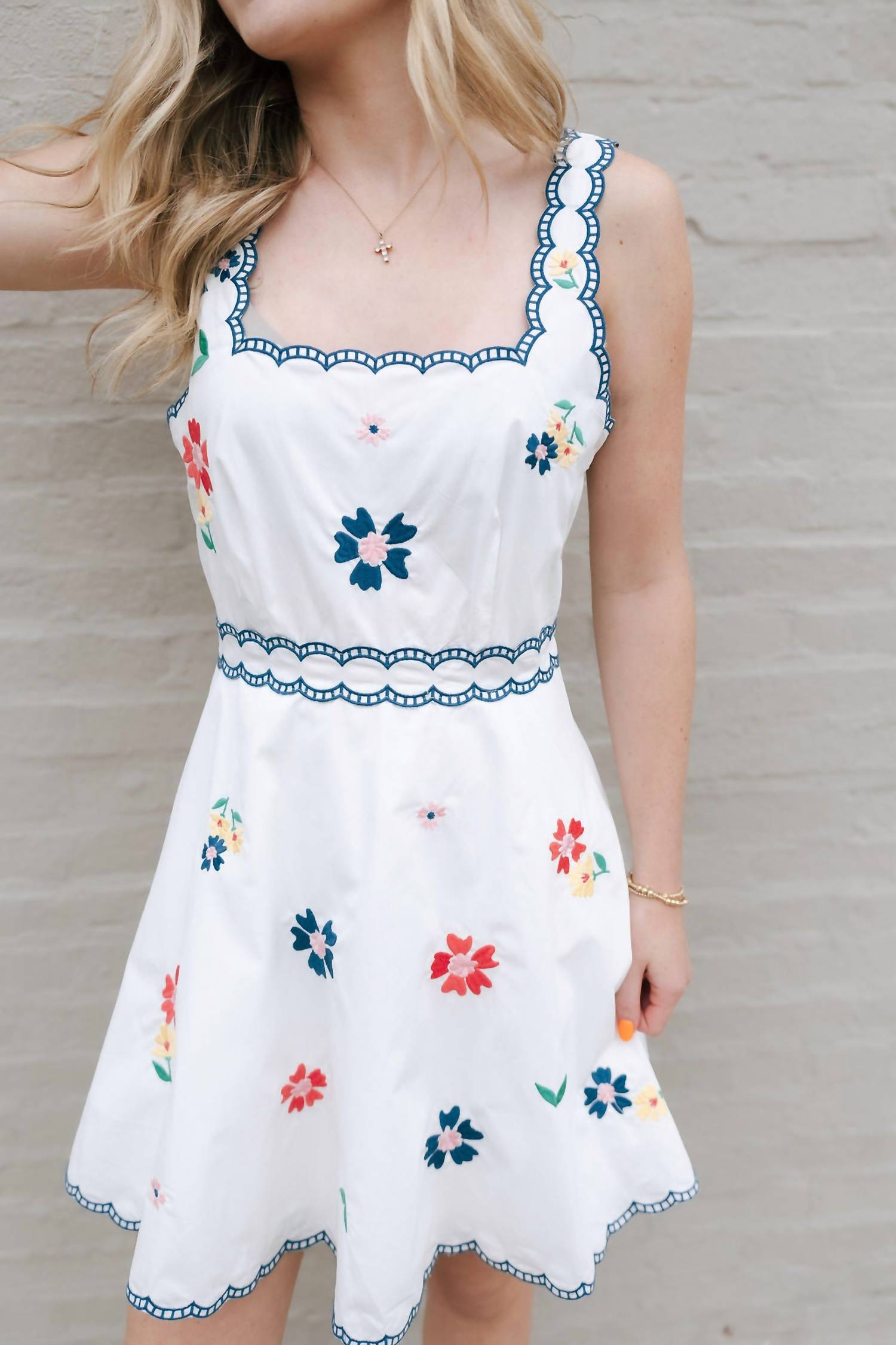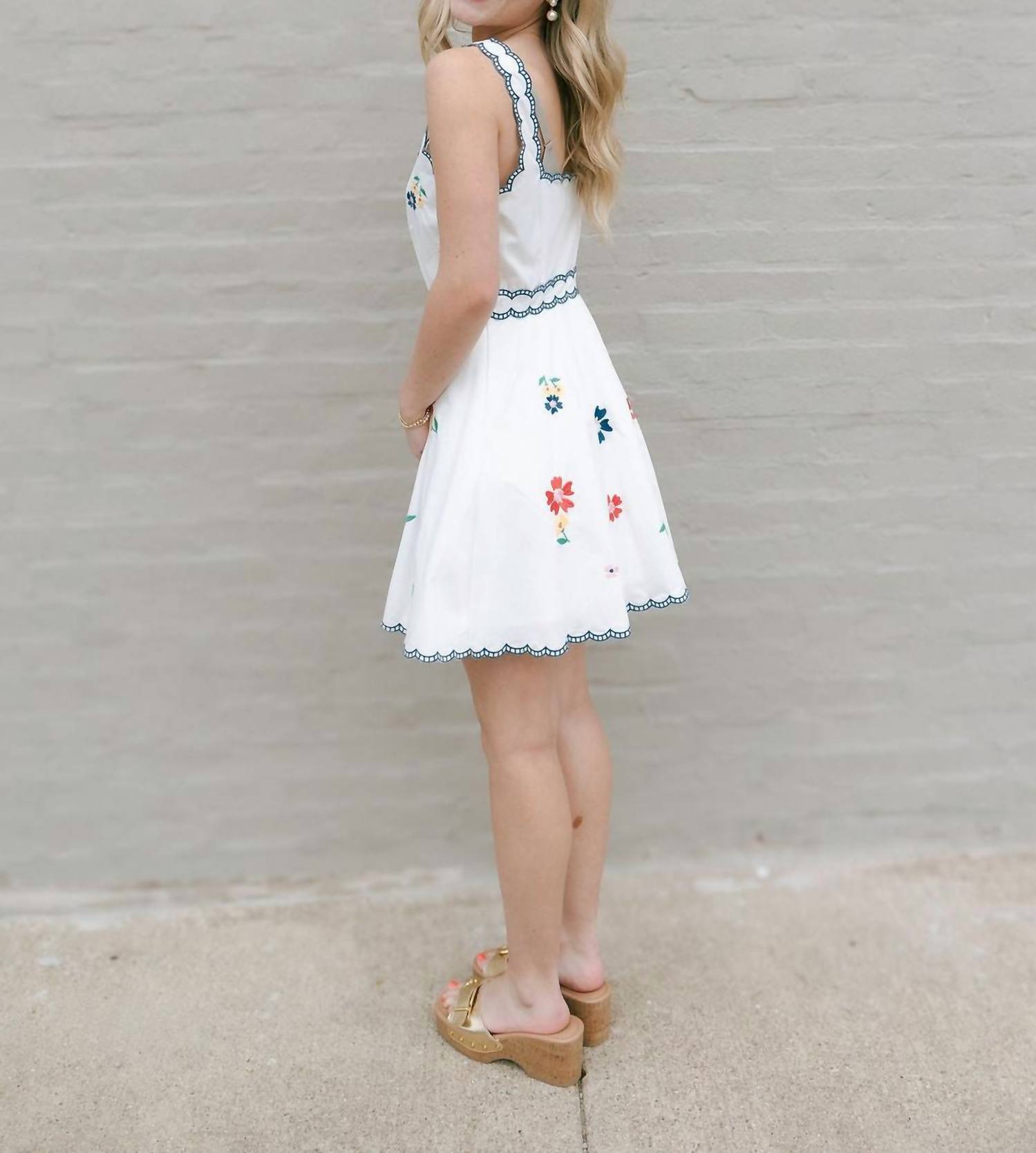 The perfect mini dress for those warmer months. Presenting the Embroidered Square Neck Dress by MABLE, a chic navy mini perfect for a boho-chic summer look. This sleeveless A-line dress is composed of 100% Rayon, and offers a flattering square neckline. With floral patterns and a length of 32 inches taken from the shoulder, it embodies effortless style. Closure: Pull on. Ideal for beach days and Thanksgiving gatherings.