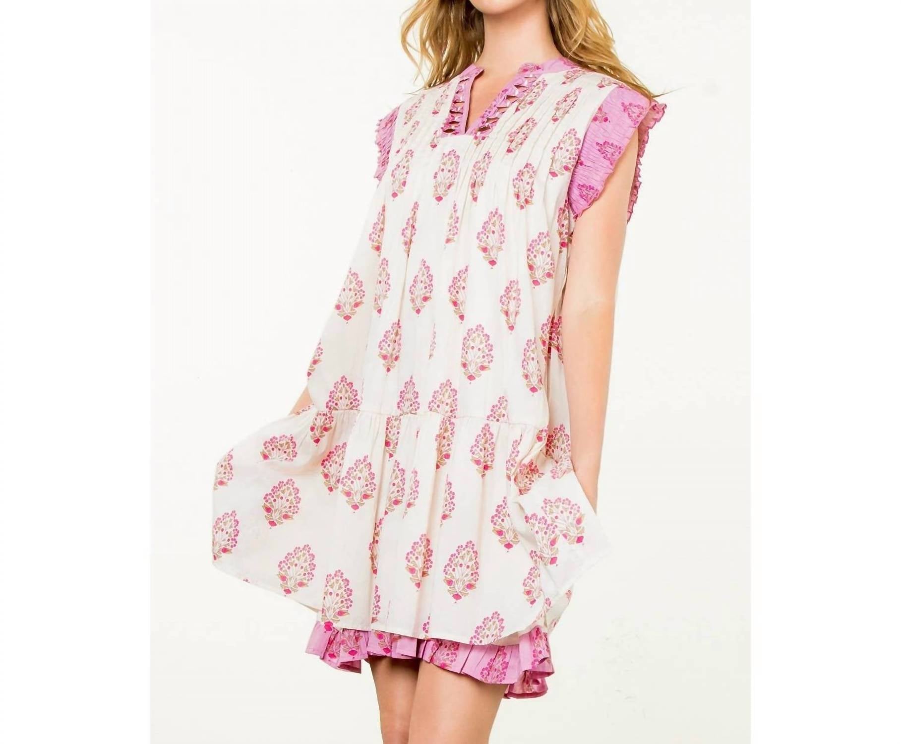 The kind of easy and flattering dress you'll be reaching for all season long. Discover the THML Sleeveless Pintuck Floral Print Dress, an elegant piece perfect for those sunny vacation days. In a refreshing cream color, this A-line mini dress has a feminine V-neck, cap sleeves, and features a delightful floral pattern. Made from 100% cotton, it promises comfort and breathability, with dimensions for size S including a 35-inch body length and a 39 1/2-inch bust width. The dress offers convenient pull-on closure, making it an easy choice for springtime boho-chic outings.