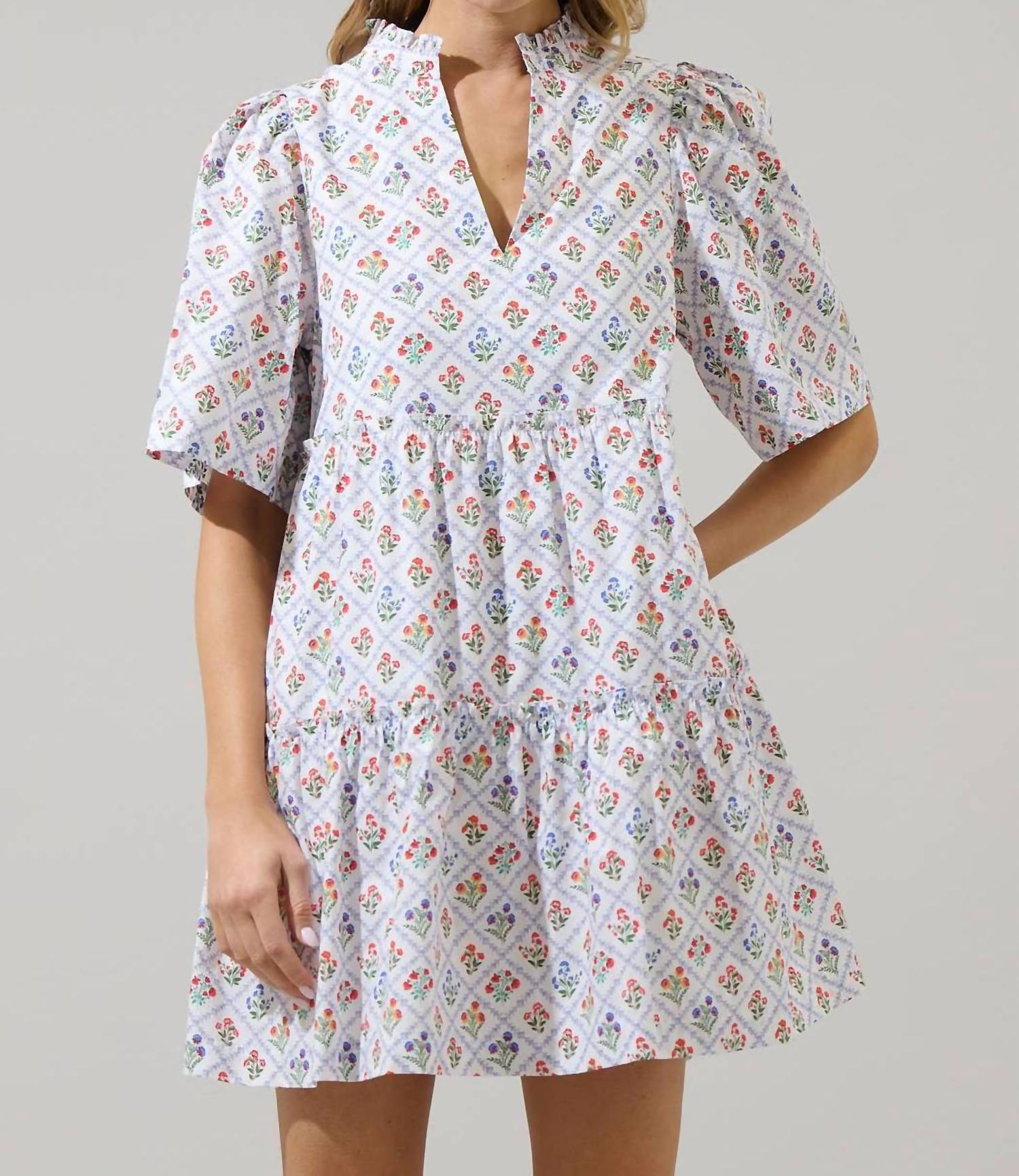 Sugarlips - Lara Floral Dixie Split Neck Shift Dress