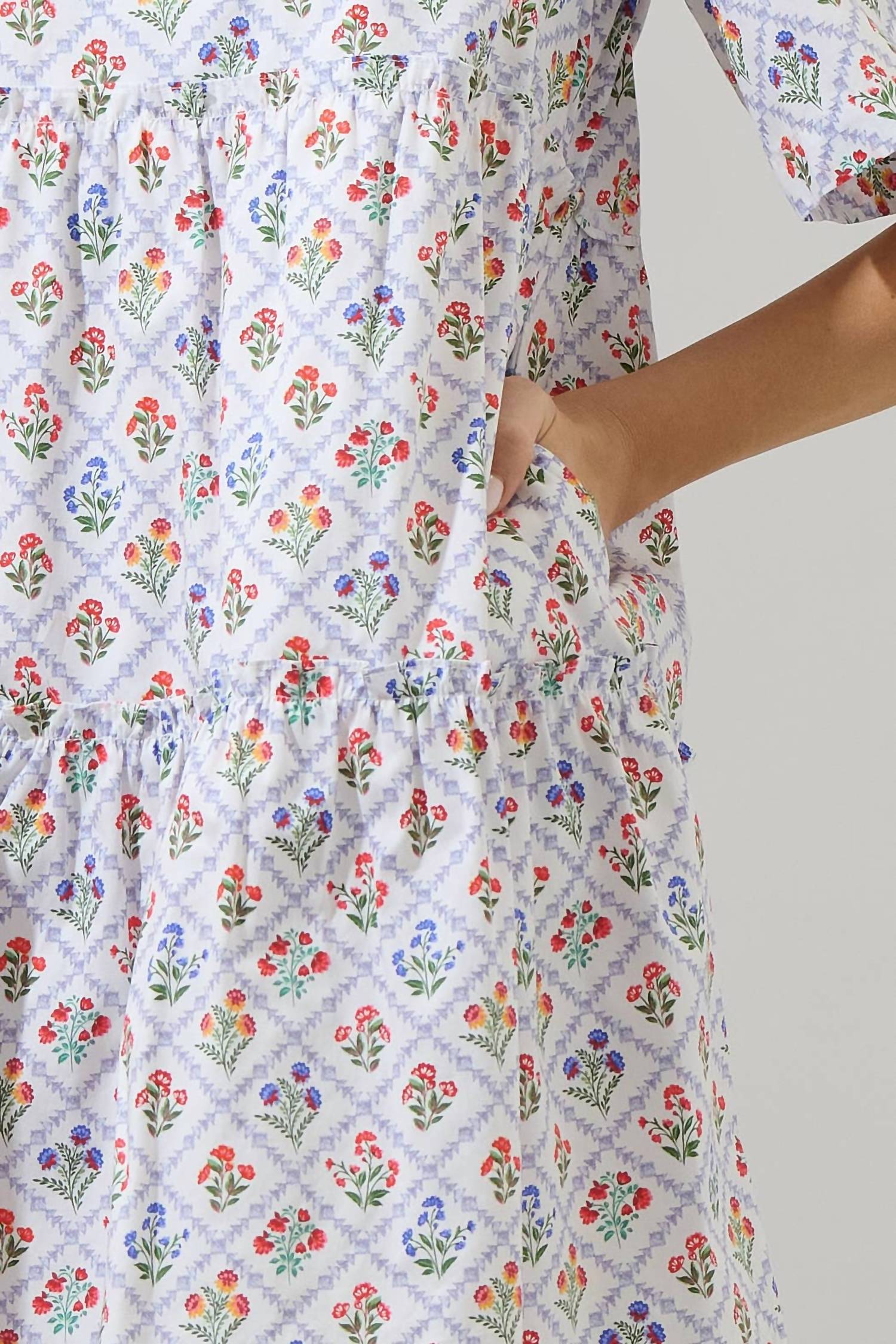 The kind of easy and flattering dress you'll be reaching for all season long. Embrace effortless style with the Lara Floral Dixie Split Neck Shift Dress by SUGARLIPS. This mini dress is beautifully designed with short sleeves and a chic split neckline, complete with pockets for added functionality. Crafted from 100% cotton, it features a breathable, floral pattern perfect for spring occasions. It measures 35 inches in length and supports a pull-on closure. Care: Machine wash. Model is 5'9" and is wearing a size XS, with the chest measuring 19.5" in size S.