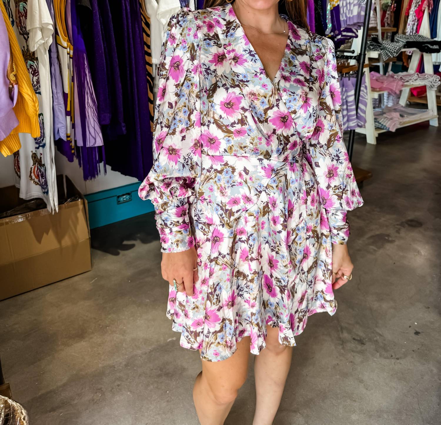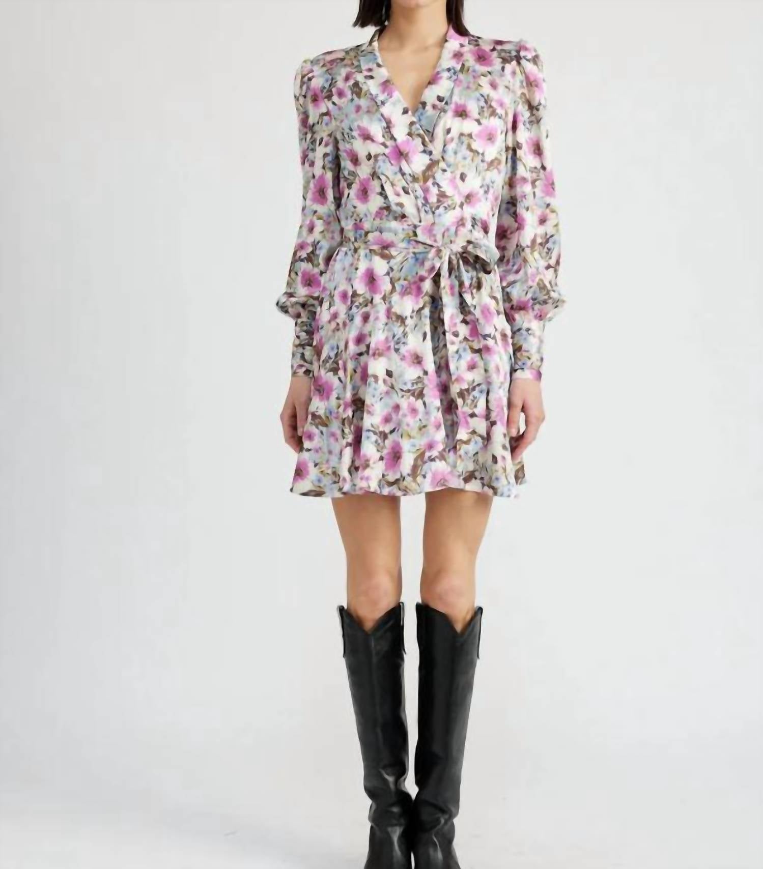 A short and breezy dress for those warmer days. Embrace floral elegance with the Jacquie The Label Satin Wrap Mini Dress, designed to make a statement at any cocktail party. This chic A-line dress in a grey floral pattern is crafted from luxurious polyester, featuring a captivating V-neck and long sleeves. The pull-on closure ensures comfort and ease, making it perfect for spring occasions like Thanksgiving. Care for this stylish piece with a gentle hand wash.