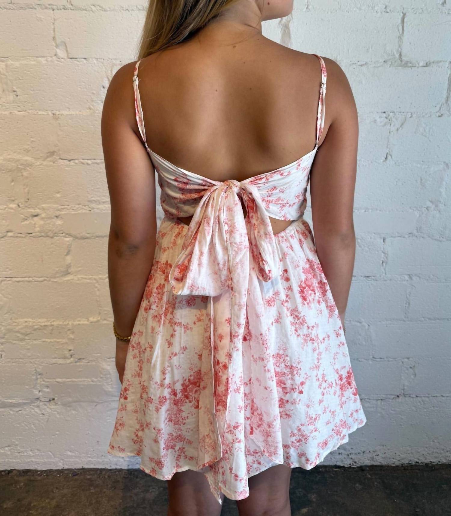 A short and breezy dress for those warmer days. Introducing the Sensation Tie Back Mini Dress by Sky to Moon, a summer essential crafted with flair in a stunning coral hue. This A-line mini dress features spaghetti straps and a flattering scoop neckline, complete with a tie closure at the open back for an adjustable fit. Made for warm-weather occasions, its lightweight, breathable fabric is perfect for your vacation and boho chic style. The absence of pockets keeps the silhouette sleek and minimal.