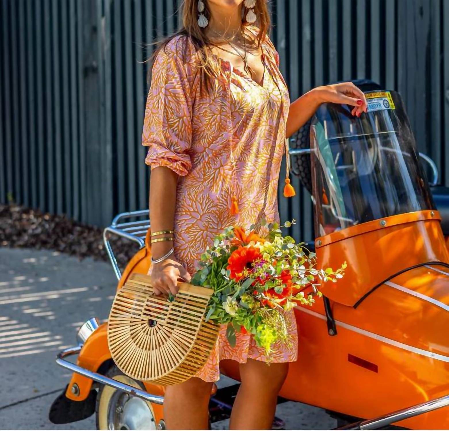 The kind of easy and flattering dress you'll be reaching for all season long. Introducing the La Mer Luxe Emily Dress, a boho-chic piece perfect for your summer wardrobe. With its three-quarter sleeves and a flattering 35.75" mini length, this dress is crafted from 100% rayon for a comfortable and flowy fit. Designed in vibrant Bubble Gum Bermuda with a floral pattern, it features a drop-waist and a V-neckline accented by a front tie and tassels. This pull-on style is simple to care for—machine wash cold on delicate or dry clean, then lay flat to dry for optimal maintenance.