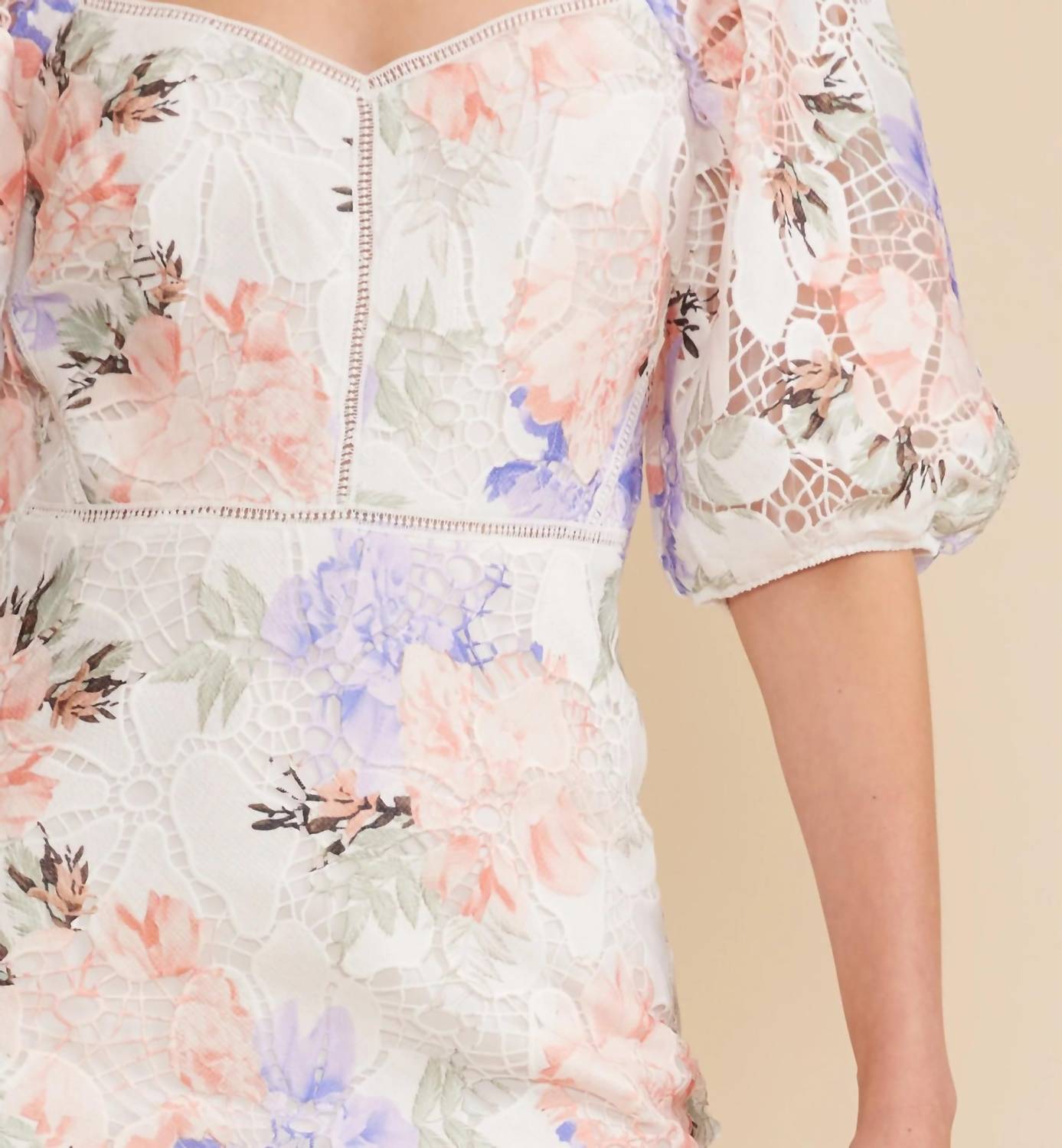 The kind of easy and flattering dress you'll be reaching for all season long. Step into elegance with the Elaine Floral Dress by LUCY PARIS, a captivating blend of romance and sophistication in a multicolor floral pattern. Featuring elbow-length balloon sleeves, this fit and flare mini dress boasts a charming sweetheart neckline and a flattering silhouette enhanced by an elastic waist and back tie closure. Crafted from high-quality polyester, it is the perfect summer dress for a boho chic look. Care instructions are not specified.
