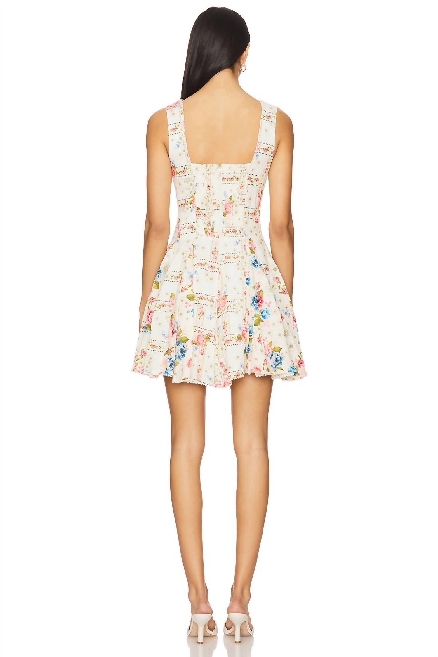 A short and breezy dress for those warmer days. Step into summer with the Kristen Mini Dress by AGUA BENDITA, a chic fit and flare piece perfect for any vacation. This sleeveless design, crafted with 46% viscose, 31% cotton, and 23% linen, features a floral pattern that oozes 90s fashion nostalgia. With a 31.88-inch length, it includes a structured bodice, a scoop neckline, and a smocked back for a flattering fit, while the zip closure ensures easy wear. Care for this elegant dress by hand washing with gentle soap; avoid bleach, dryers, and ironing to maintain its exquisite details. Model is wearing a size S (5'9" height, 33" bust, 24" waist, 37" hips).