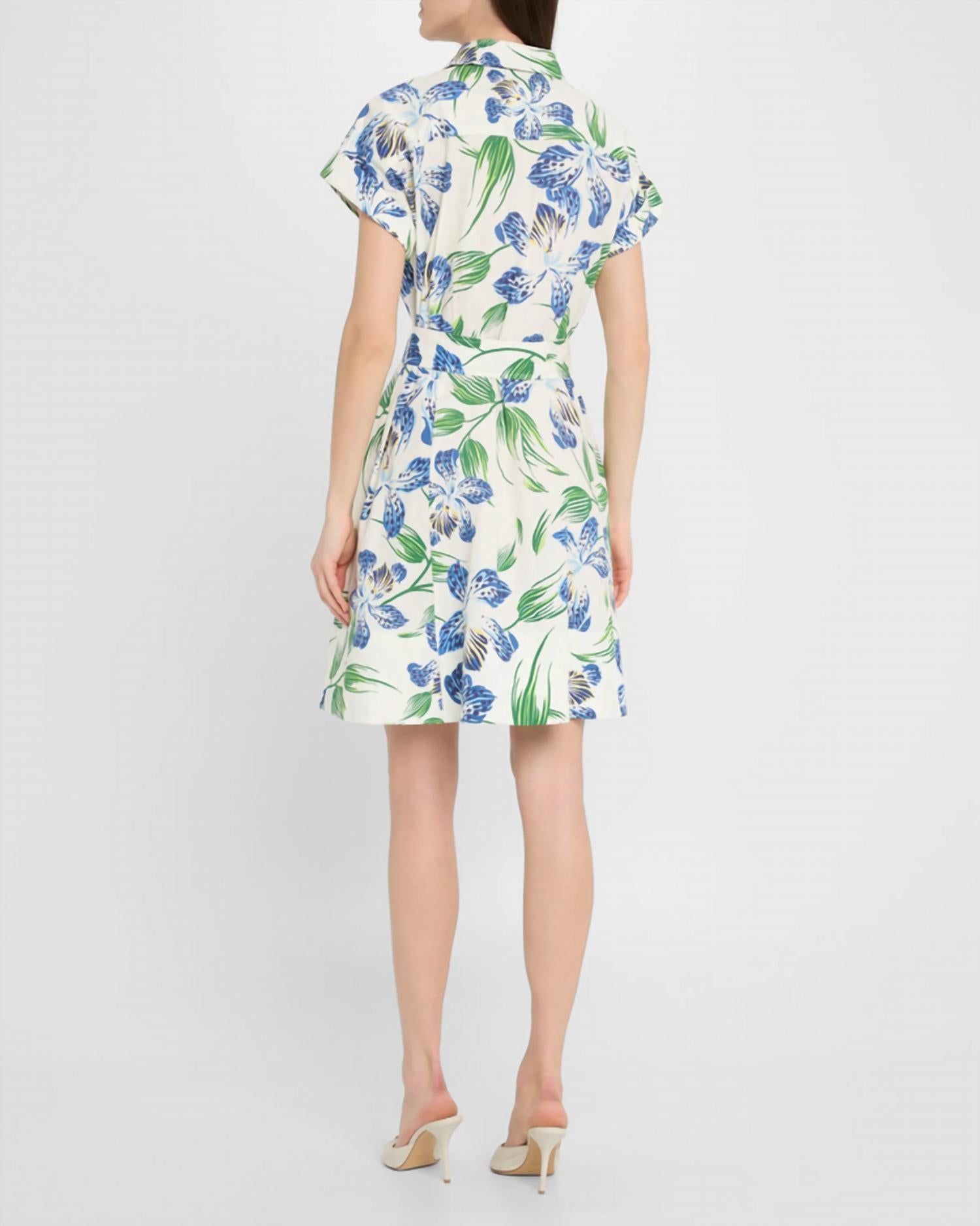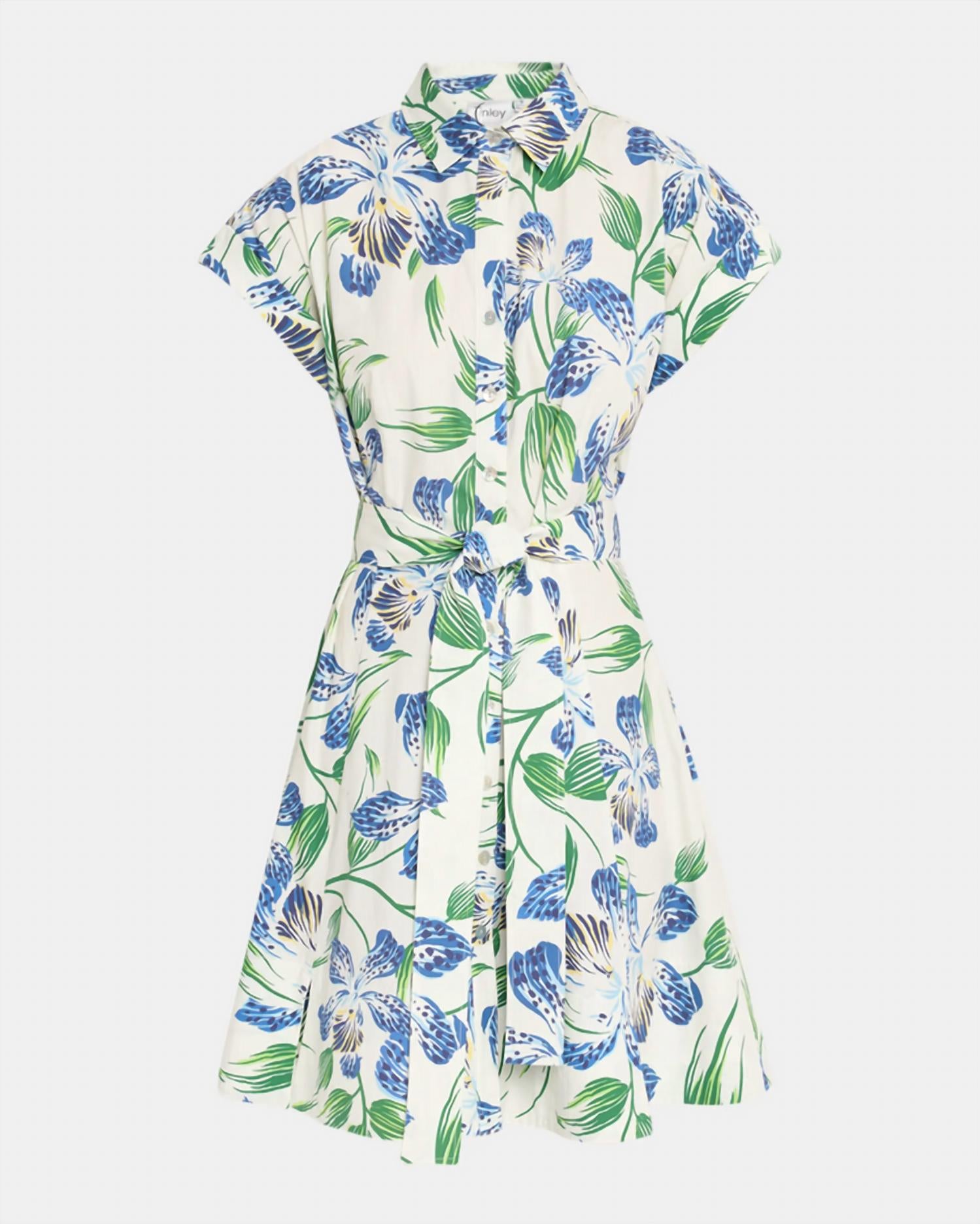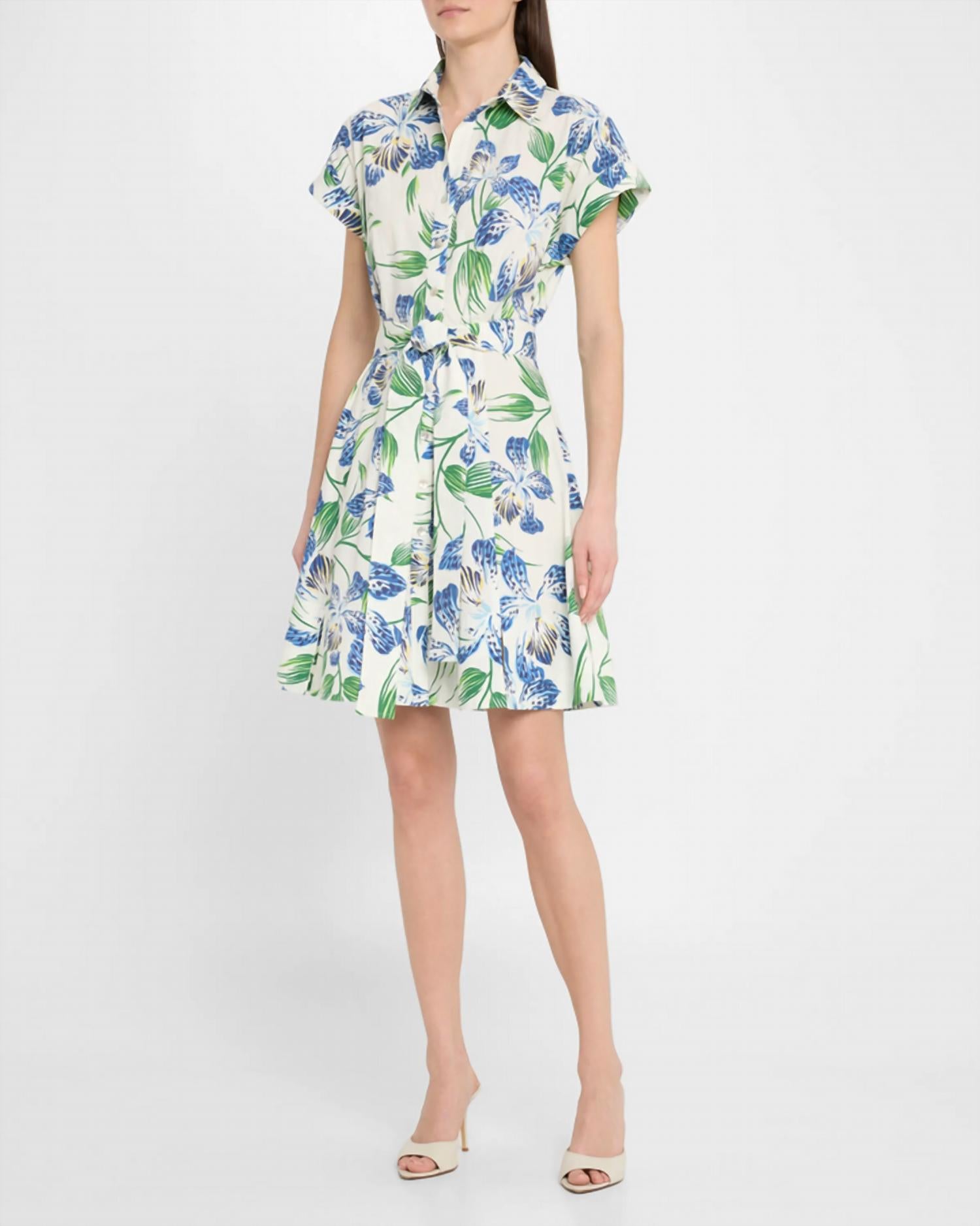The kind of easy and flattering dress you'll be reaching for all season long. Elevate your spring wardrobe with the Finley "Chantel" Tie Front Shirt Dress, a chic number featuring short cap sleeves and a playful navy and white polka dot pattern. Crafted from 100% cotton, this knee-length A-line silhouette offers a flattering fit complete with a self-tie belt to accentuate the waist. The dress measures approximately 38.5 inches in length from shoulder to hem and boasts a spread collar with a button-front placket for classic charm. Made in the USA, this dress is easy to care for with hand or machine wash cold instructions.