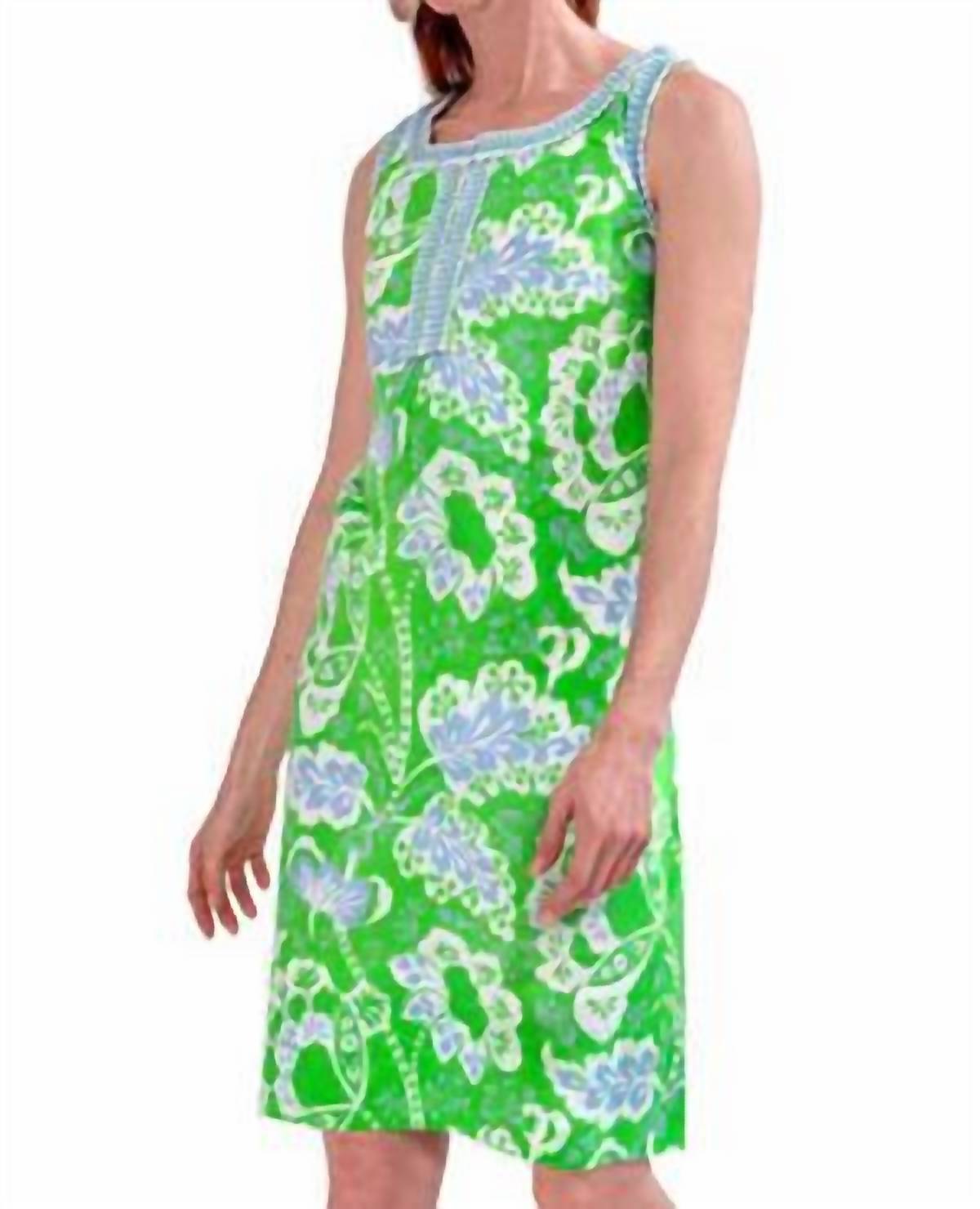 A short and breezy dress for those warmer days. Refined style and comfort. Delightful mini dress in a vibrant Flora Kelly color. Captures attention with its delicate floral pattern. Crafted from 100% cotton. Features meticulous pleating on all edges and the inside back panel. Subtle yet sophisticated texture to the sheath silhouette. Crewneck design with center split offers a classic, timeless appeal. Sleeveless cut ensures you stay cool and chic. Practical side seam pockets blend functionality with fashion. 4" hand hem exudes artisanal craftsmanship. Easy to care for, this dress can be machine washed cold and tumbled dry on a cool setting, or dry cleaned for effortless maintenance.