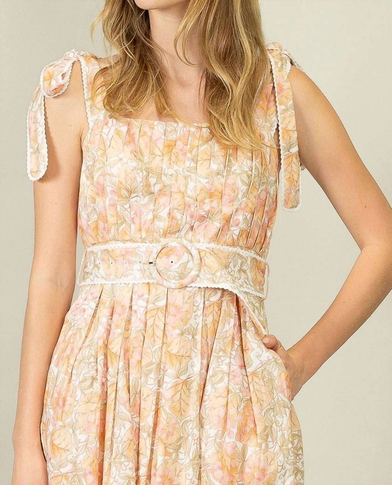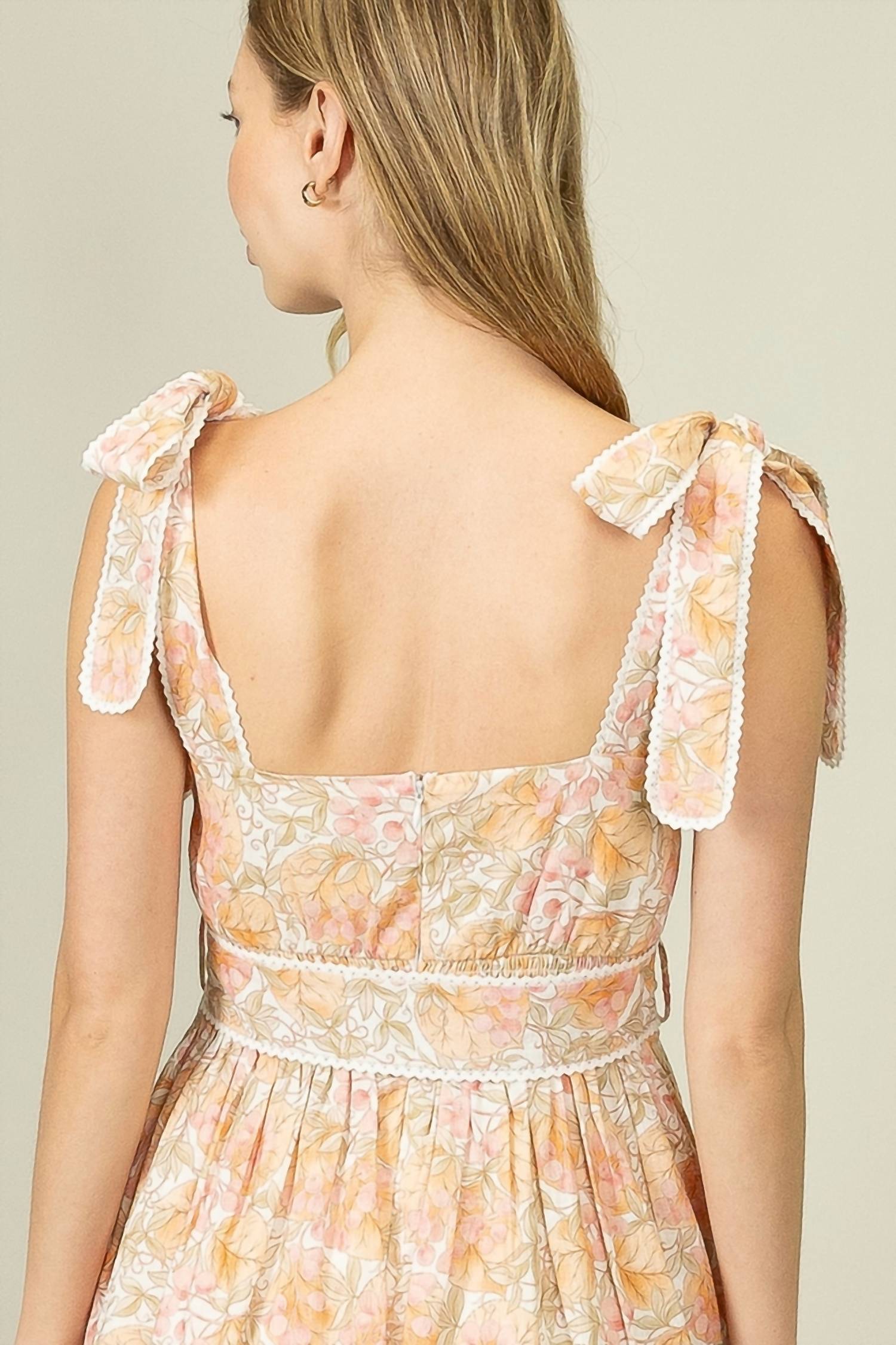 The kind of easy and flattering dress you'll be reaching for all season long. Introducing the Linen Print Crochet Trim and Pleated Belt Mini Dress by Heyson, a perfect blend of boho chic and elegant design. This sleeveless A-line mini dress in an ivory and peach floral pattern features a flattering squareneck and comes with a matching belt to enhance your silhouette. Crafted from 55% hemp and 45% rayon, it offers breathability ideal for summer vacations. Made in China, it boasts a zip closure for easy wear and is perfect for both daytime and evening events.