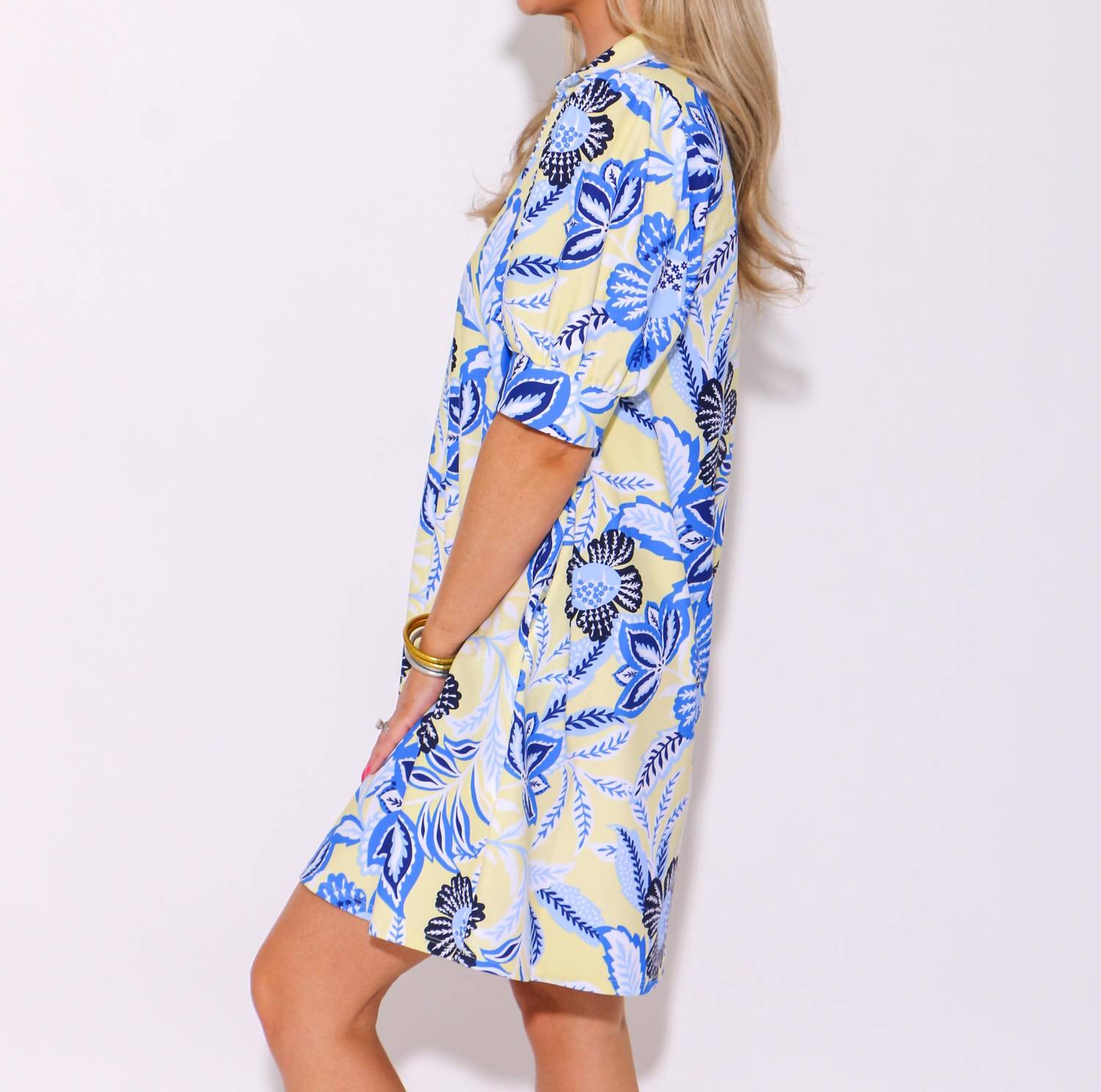 The kind of easy and flattering dress you'll be reaching for all season long. Elevate your wardrobe with the Emerson Mini Dress by JUDE CONNALLY, a contemporary choice in vibrant Raspberry Gold. This mini dress showcases short puff sleeves and a flattering V-neckline, crafted from 97% Nylon, 3% Spandex that promises comfort and style. It features convenient pockets and a pull-on closure, making it a practical choice for various occasions. Machine washable and designed for easy upkeep, this dress is ideal for summer workwear and holiday parties.