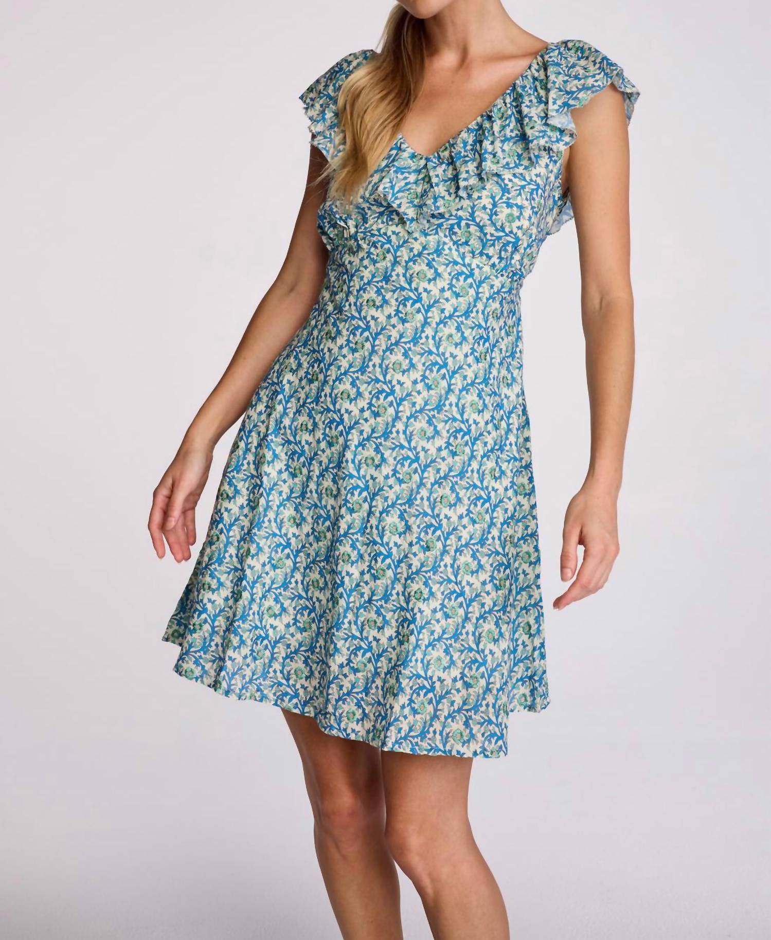 The perfect mini dress for those warmer months. Introducing the Cassie Dress by Sundays in Embroidered Floral, a delightful addition to any spring wardrobe. This charming A-line mini dress features cap sleeves and delicate ruffles along the neckline for a feminine touch. Crafted from 100% cotton with a convenient tie closure, it offers a flattering fit, finishing at mid-thigh. Care is a breeze with machine wash and tumble dry instructions. Model is 5'9" and wearing a size Small.
