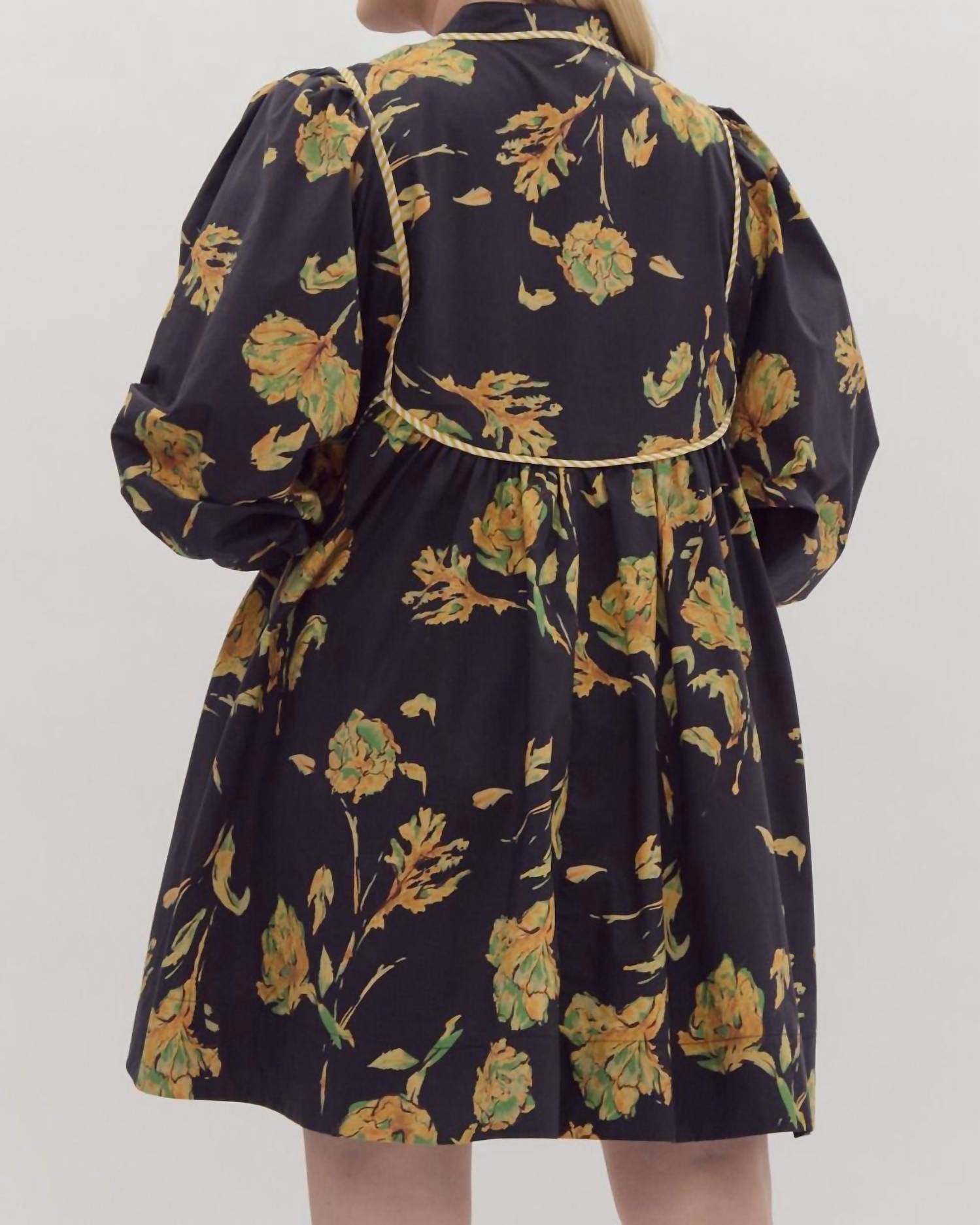 The perfect mini dress for those warmer months. Introducing the Lilian Dress by Entro, a vibrant multi-colored mini dress perfect for a holiday party. This A-line dress features a floral print with a v-neckline and three-quarter sleeves, enhanced by contrast stripe piping and a charming self-tie at the front. Composition: 100% Cotton. Closure: Pull-on, with convenient side pockets for added functionality.
