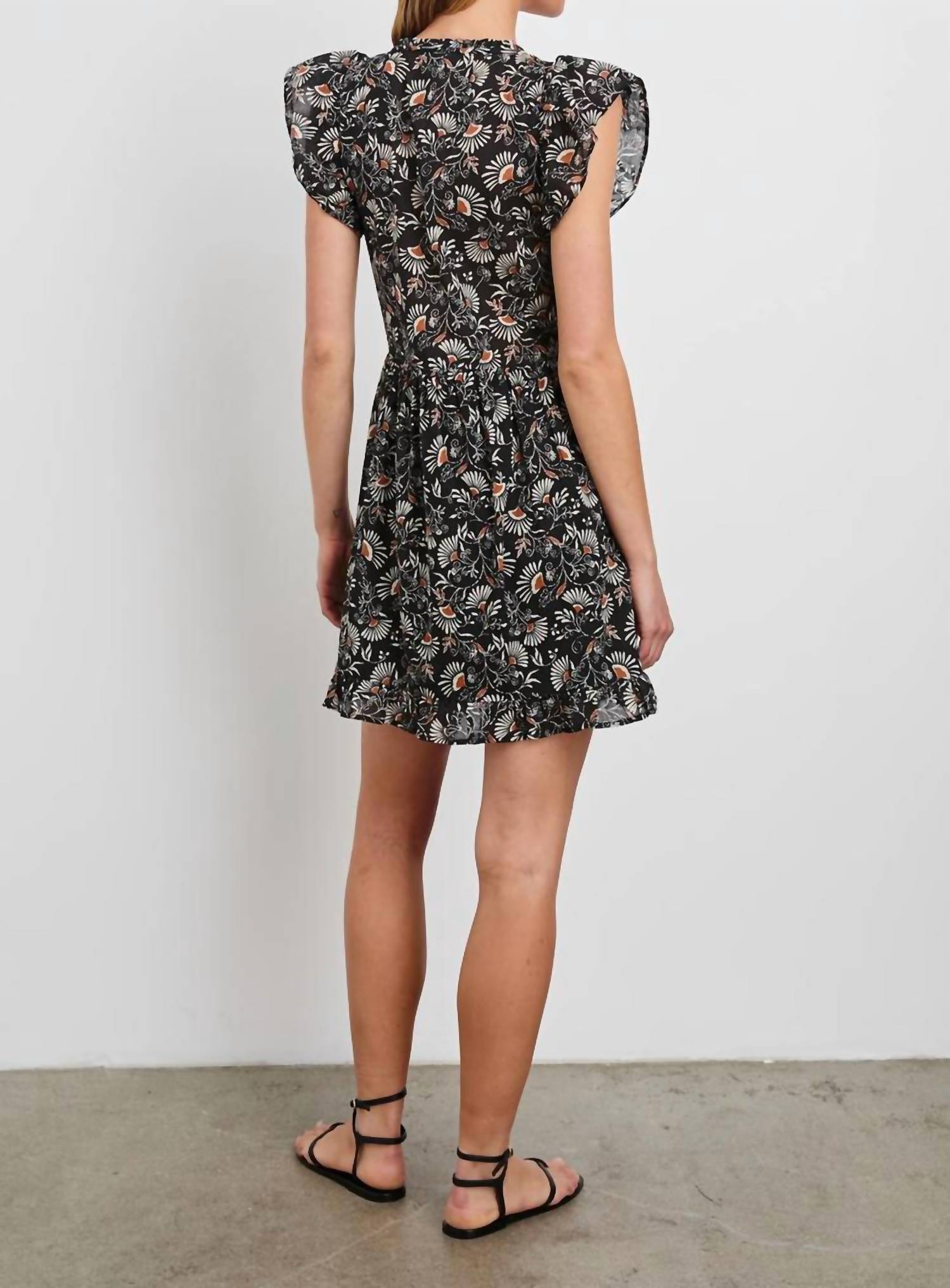 The perfect mini dress for those warmer months. Elevate your summer wardrobe with the Cassia Dress by Rails, featuring cap sleeves and a breezy 100% cotton composition. This mini dress, crafted in a vibrant Zinnia hue with a floral pattern, flaunts a babydoll silhouette complete with a ruffle hem and a plunge V-neckline. Designed for ease and comfort, it features a convenient pull-on closure, and measures 35.5 inches in length. Care instructions advise a hand wash with similar colors and line drying, with a cool iron if needed.